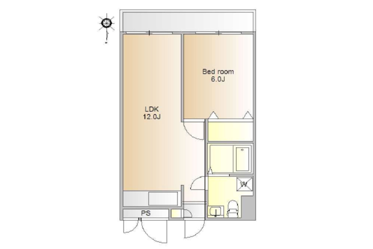 玄関からお部屋に入ると右手側に13.6帖のLDK。扉を挟んで左手側が6帖の洋室と、振り分けのような間取りになっています。