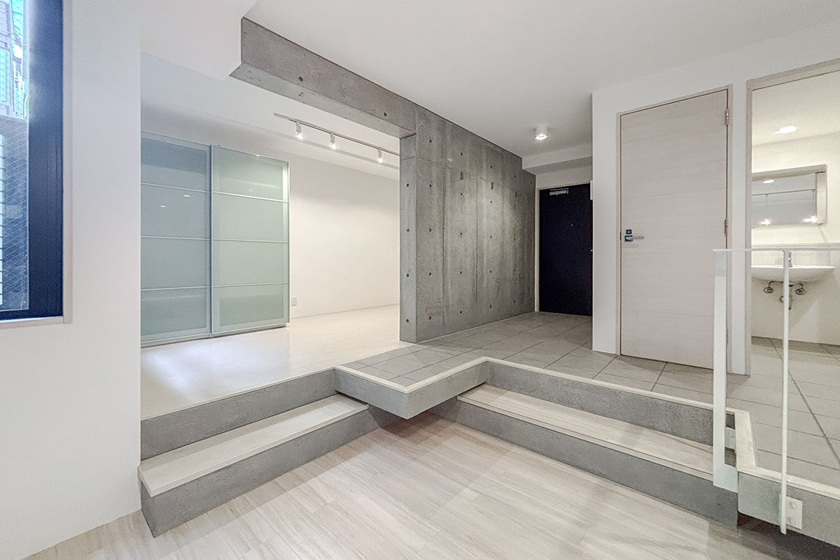 居室とエントランス・水回り空間はステップで1フロアの高さが異なっており、生活動線もメリハリがつきそう。