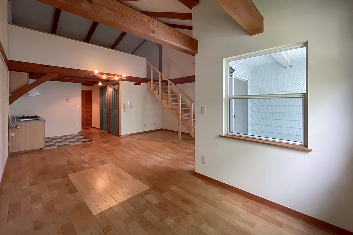 (奥に見える梁より先(3帖分ほど)は1.4m以下で少し低くなります)