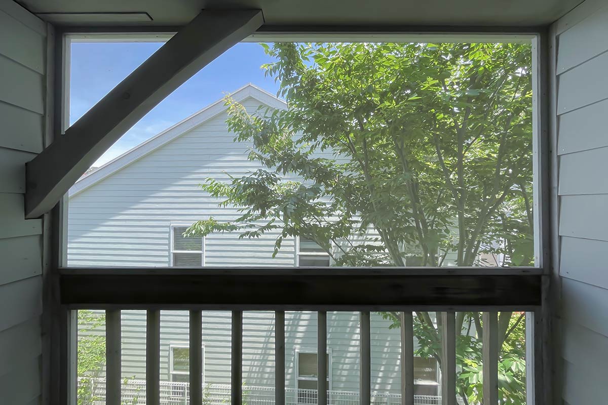 屋根付きなのはもちろんのこと、なんと薄っすらと網がかかっており、デッキ内に虫が入ってこない工夫がなされているのです!こんなに親切なデッキ、初めてです…