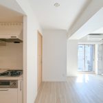 廊下にキッチンがあるタイプではなく、きっちんと部屋の中に入ってから奥にキッチンがあるタイプです。
