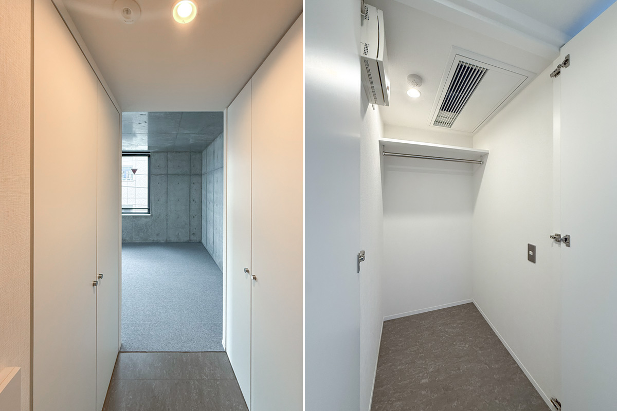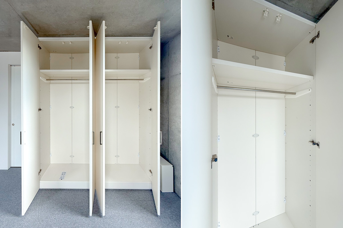 室内のラック付きクローゼットはお手持ちの家具家電に合わせて配置できる可動式◎