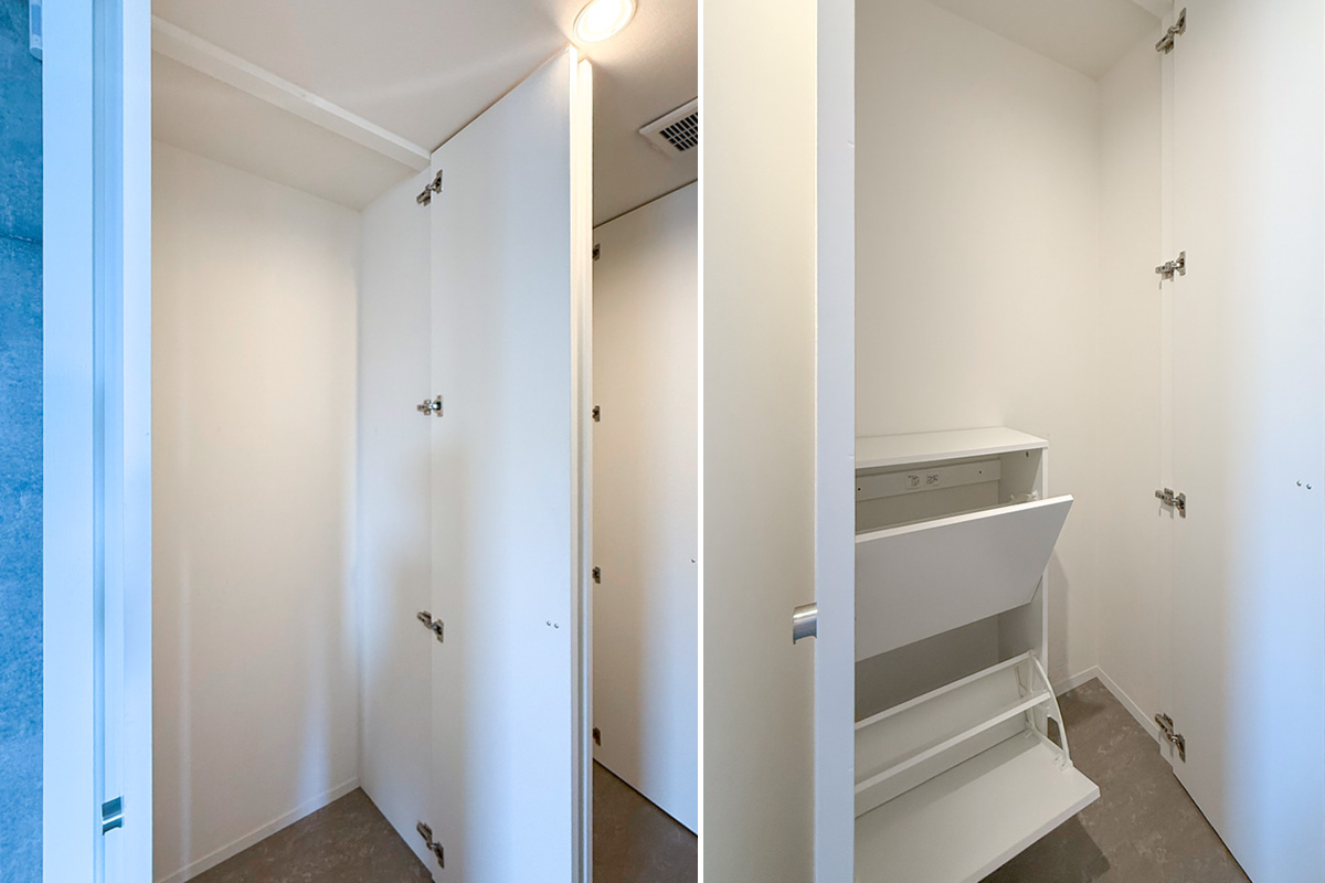 収納は他にも玄関にシューズクローゼットと二つのクローゼットとなかなかの容量があります。