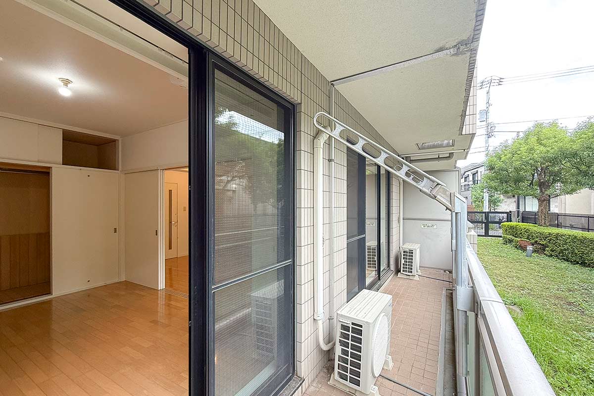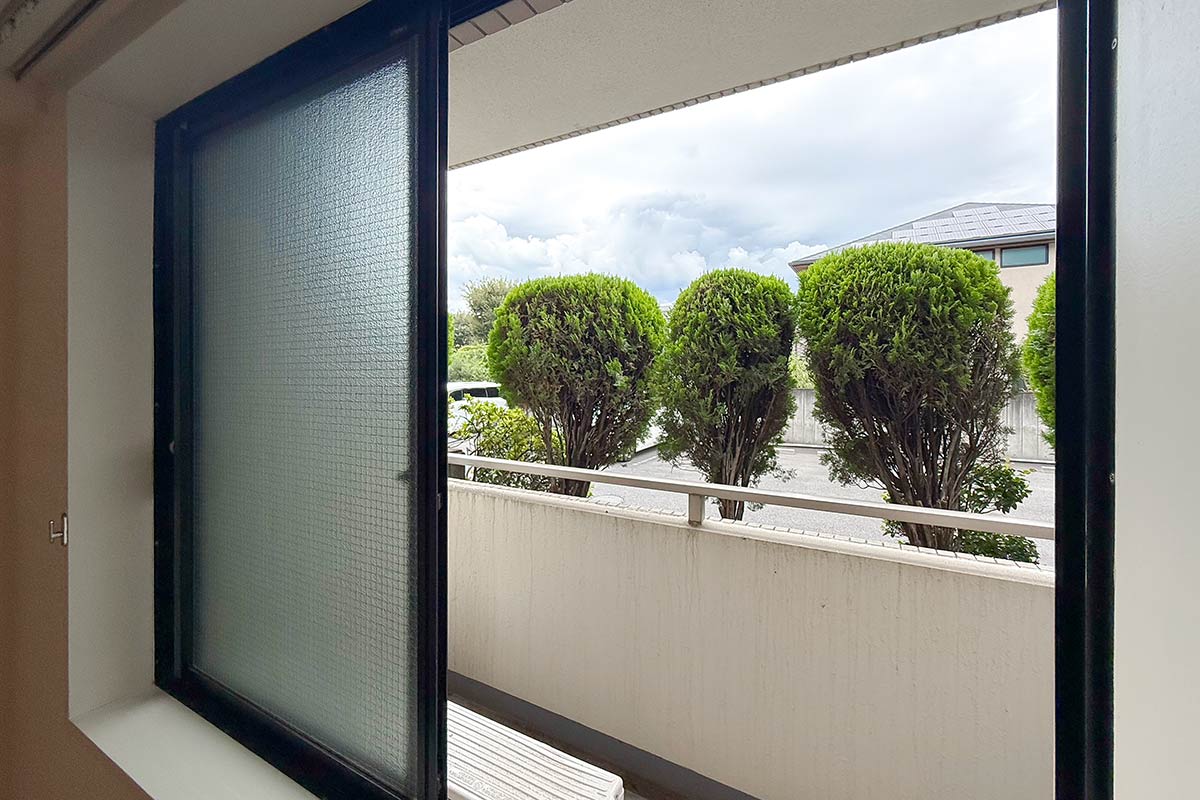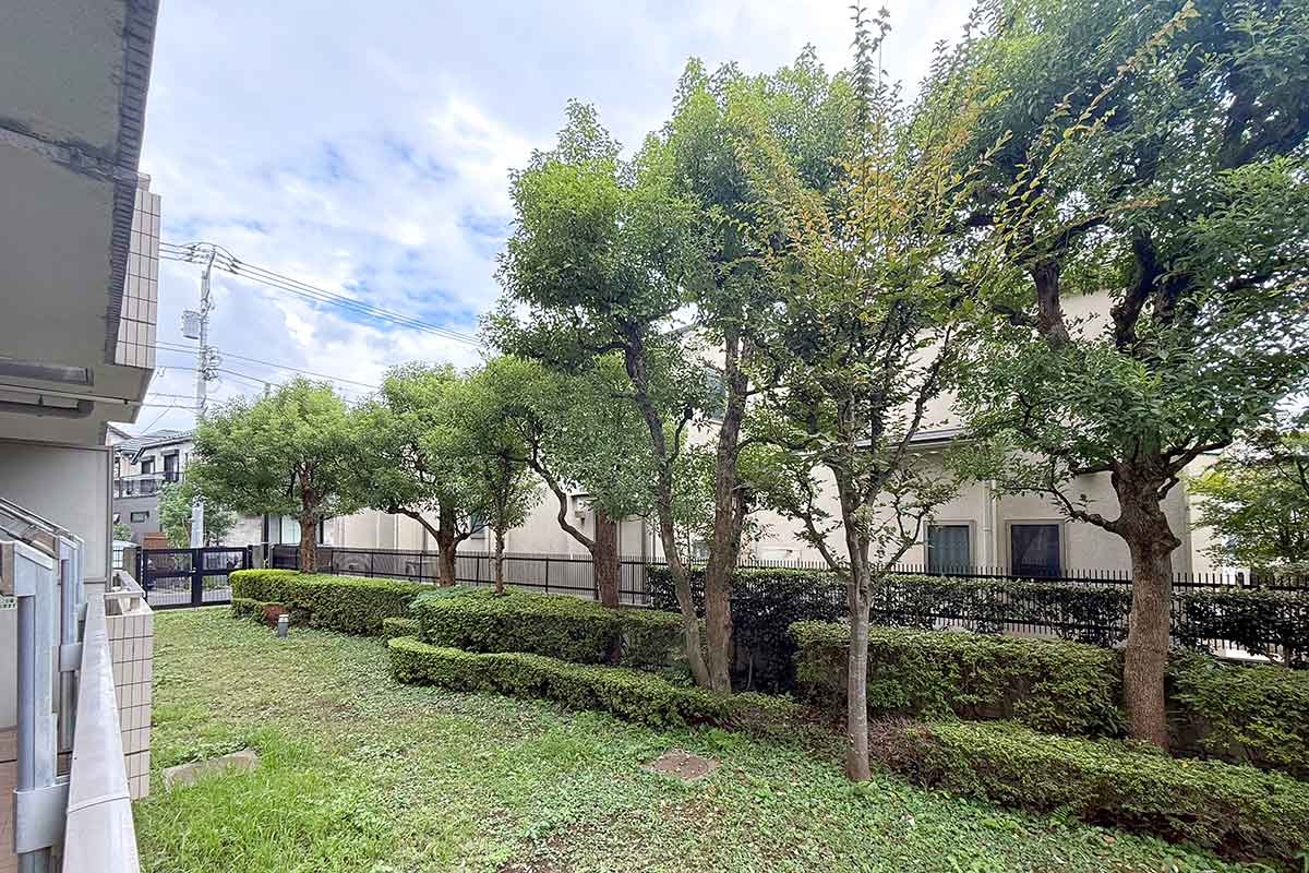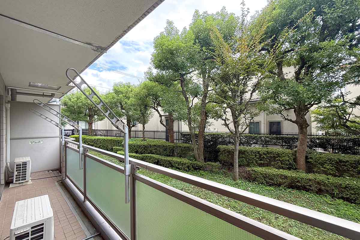 リビング側のバルコニーからは敷地の緑が見える癒しのロケーション!