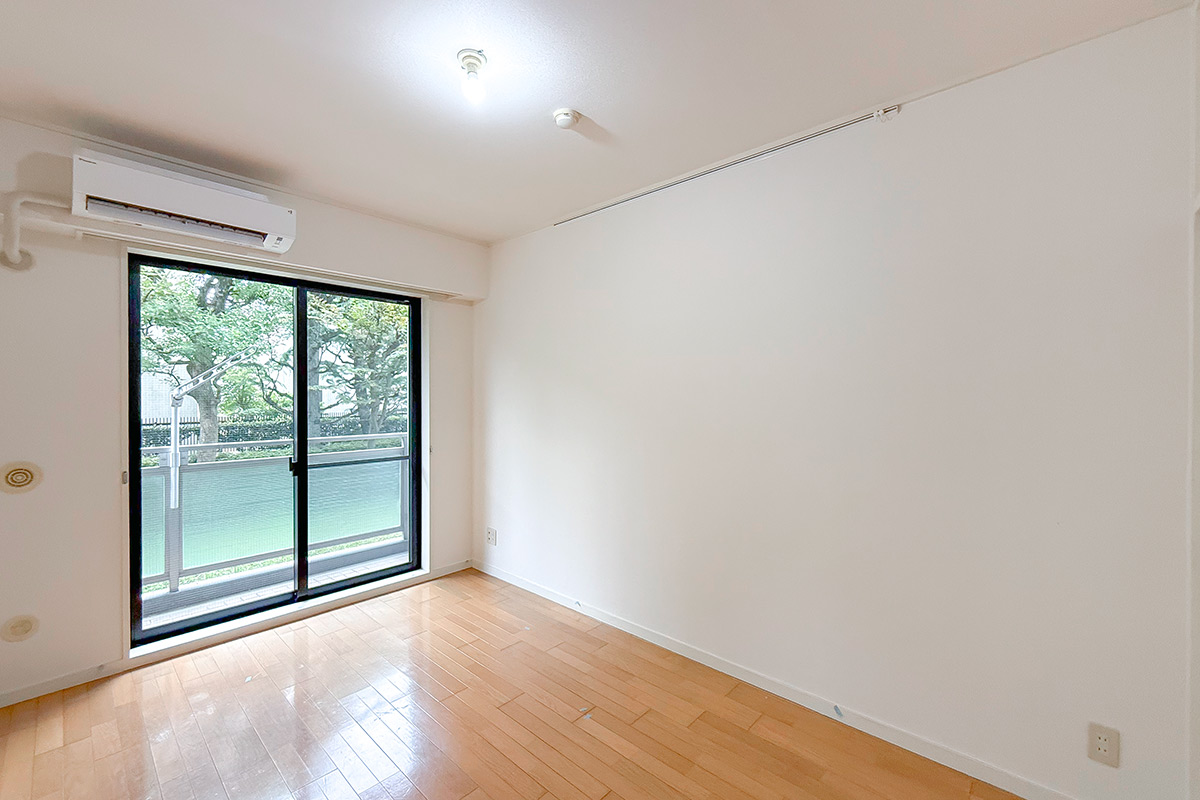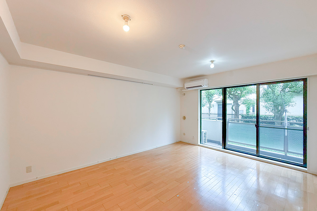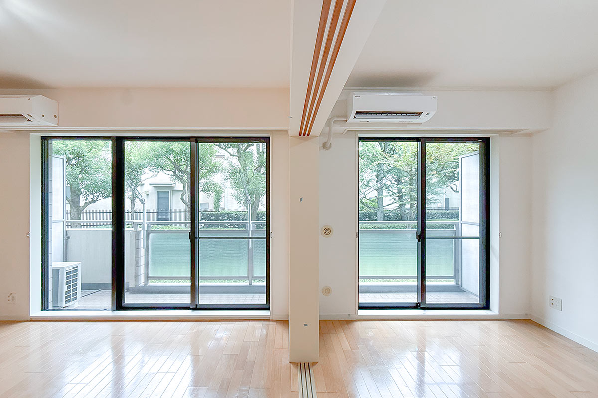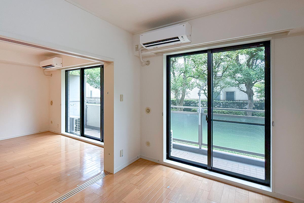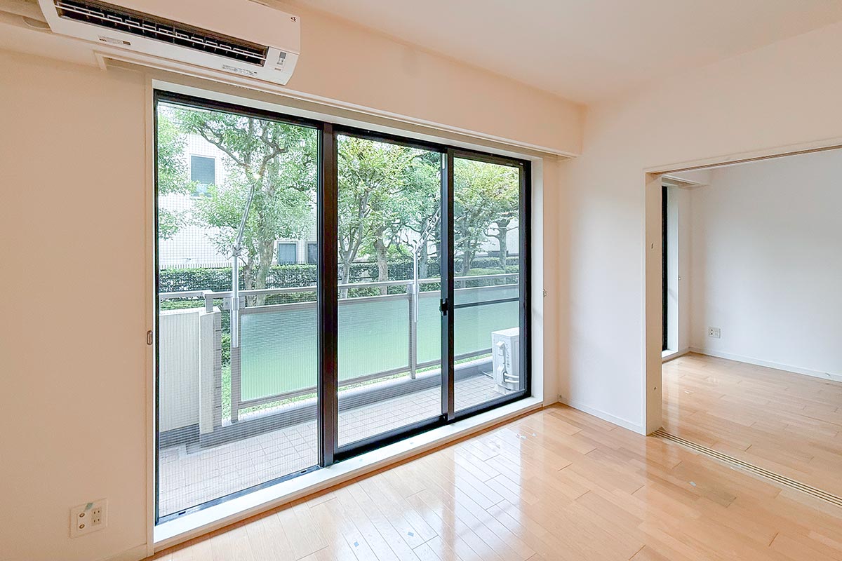 リビング側のバルコニーからは敷地の緑が見える癒しのロケーション!