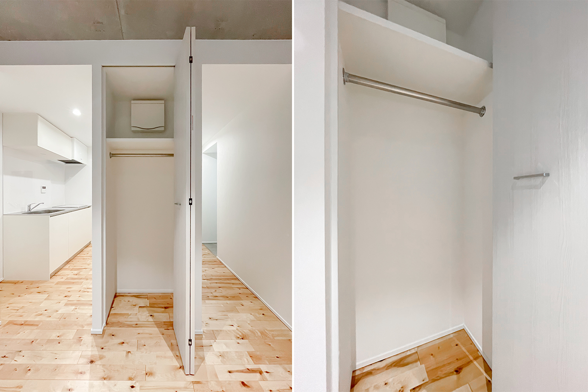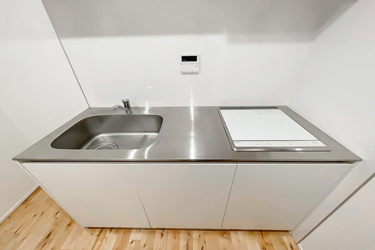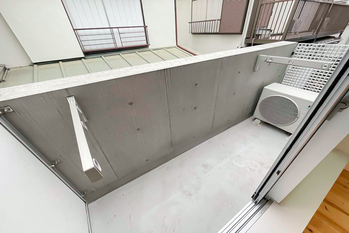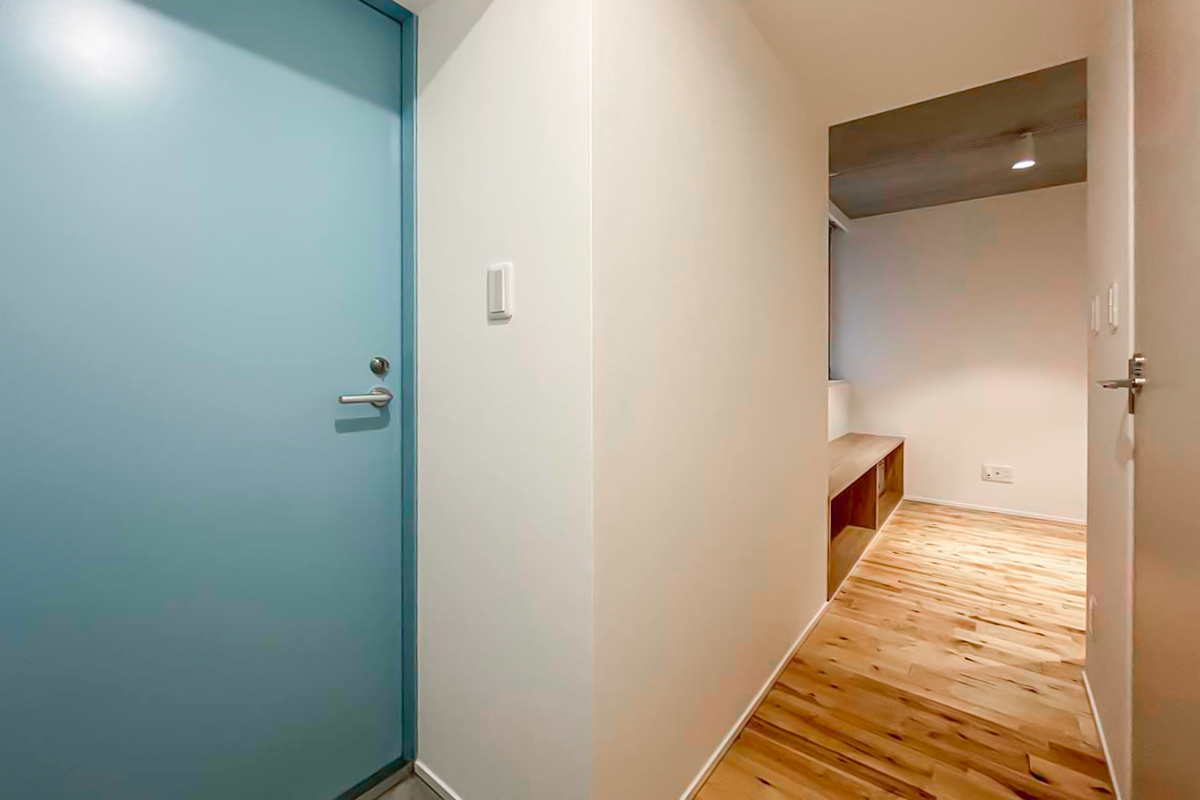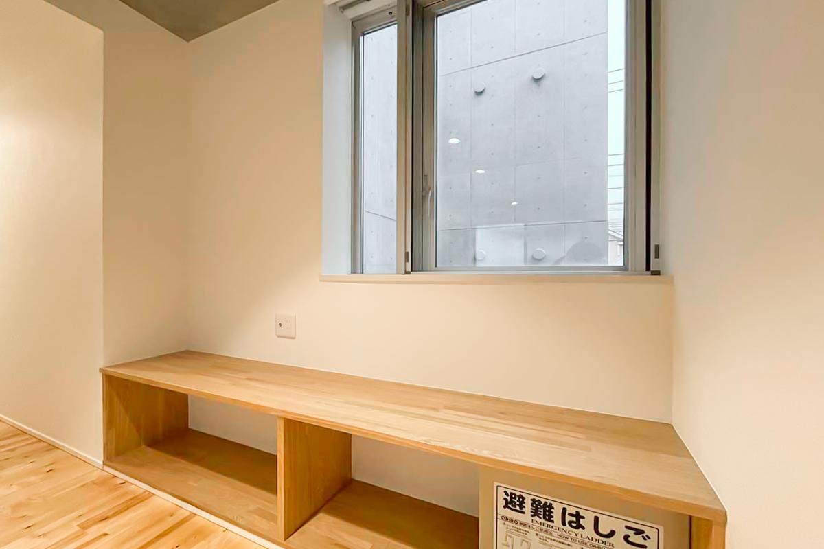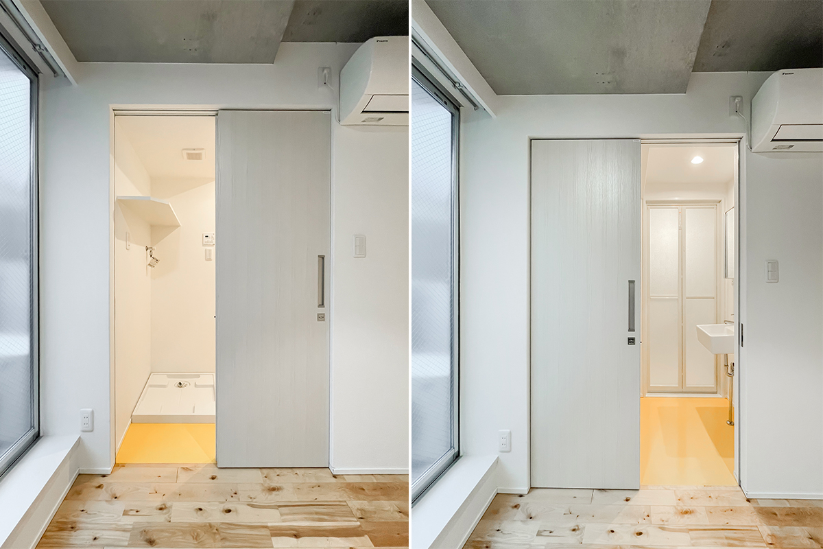 床は無垢床で風抜けや陽射しにも期待ができ、一般的なワンルームに比べて温かみあり、開放的な空間です。