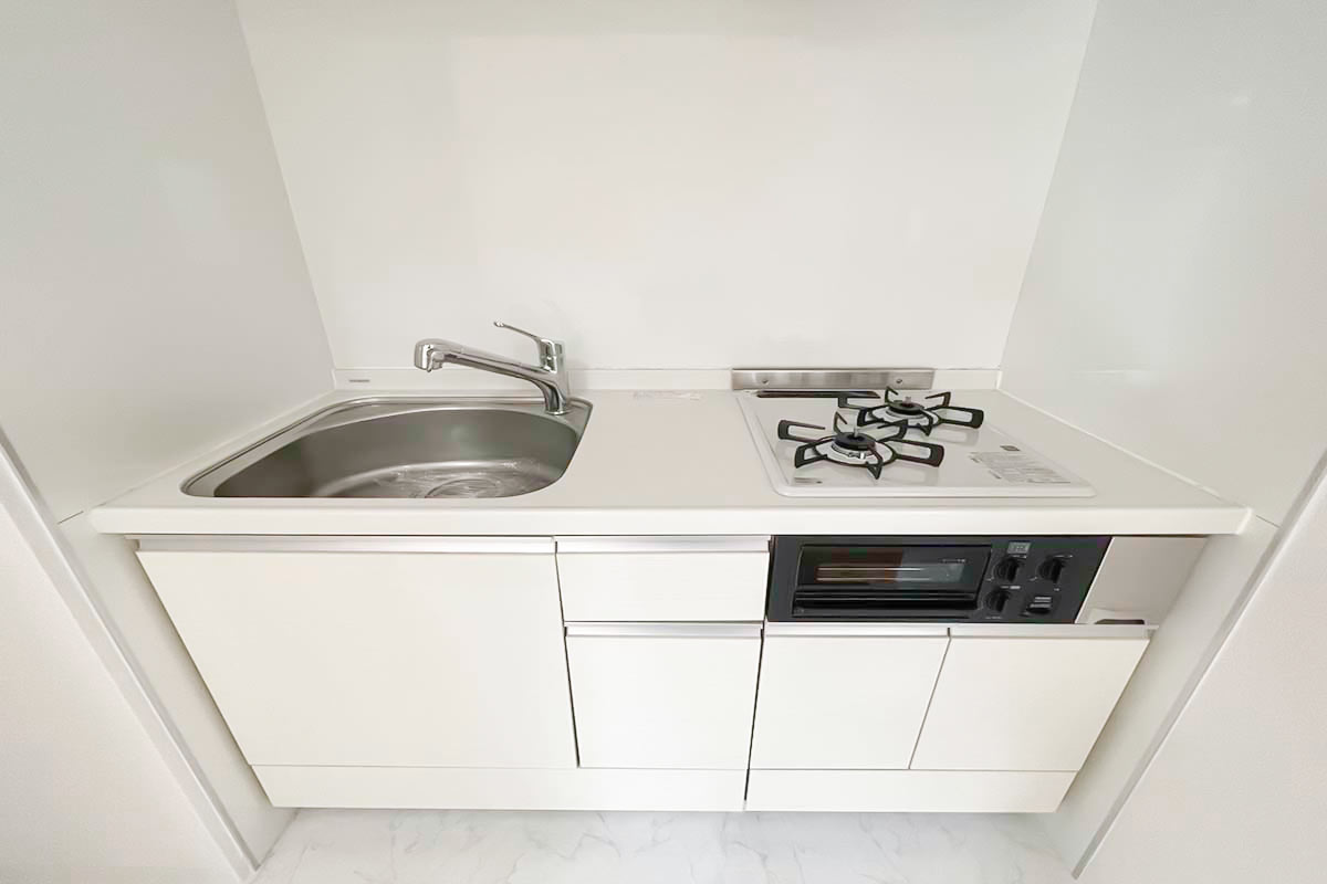 エアコン、B.T別室、モニター付ドアホン、独立洗面化粧台、室内洗濯機置場、都市ガス、エレベーター、追焚機能、浴室乾燥機、システムキッチン、収納スペース、オートロック、宅配ボックス、敷地内ごみ置場、防犯カメラ、デザイナーズ、角部屋、駐輪場