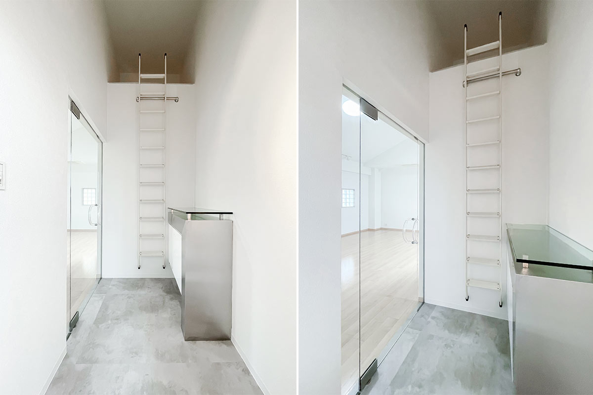 備え付けの梯子がやや重く、玄関上のロフトしか写真が撮れなかったのですが、大きなキャリーケースが入りそうな広さがありました。