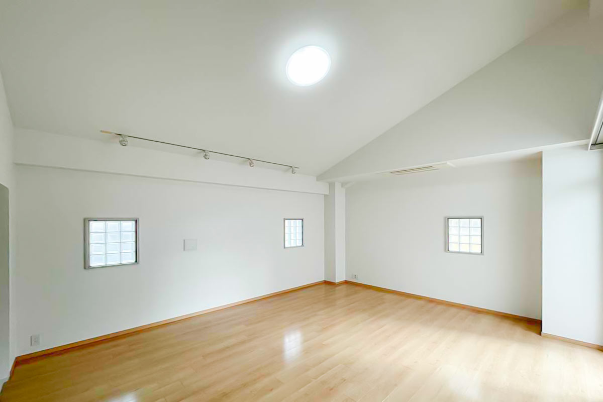 ただ天井が勾配天井で高くなっていたり、ガラスブロックが埋め込まれた壁面もあり、じっくり見ることで味わい深くなるお部屋です。