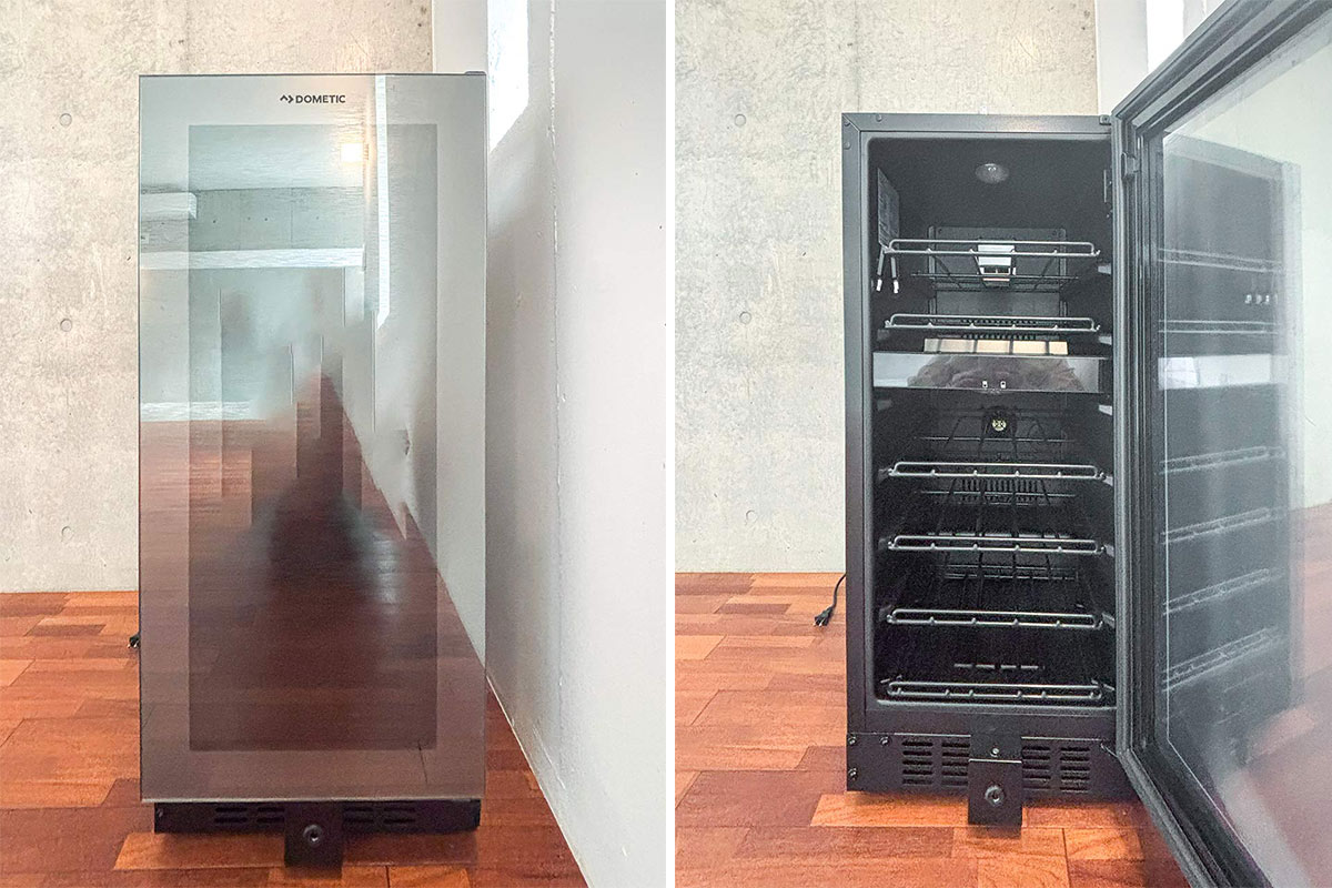 スウェーデン製「Dometic社」のワインセラーが備え付けられ、ソムリエが厳選したおすすめのワインが毎月届けられるサービスも!