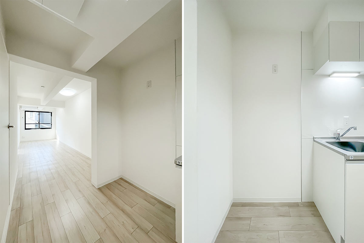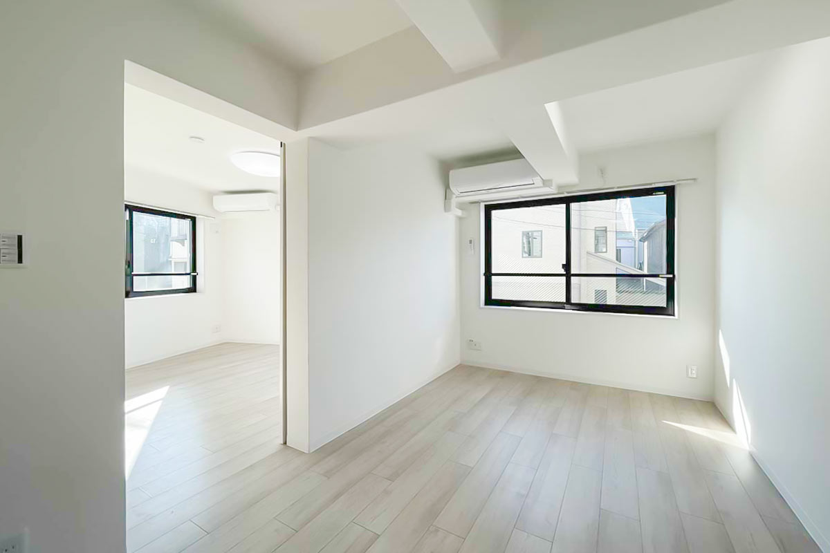 奥行きのあるLDKと2面採光の洋室。なんといっても窓辺が明るい!日中は電気を付けなくても過ごせそうな明るさでした。