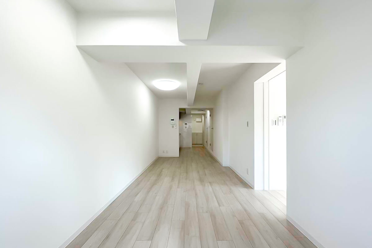 LDKは奥行き深いタイプなので、壁に沿って家具を配置して、窓まで一直線の通り道を作るとお部屋が広く、整って見えます。