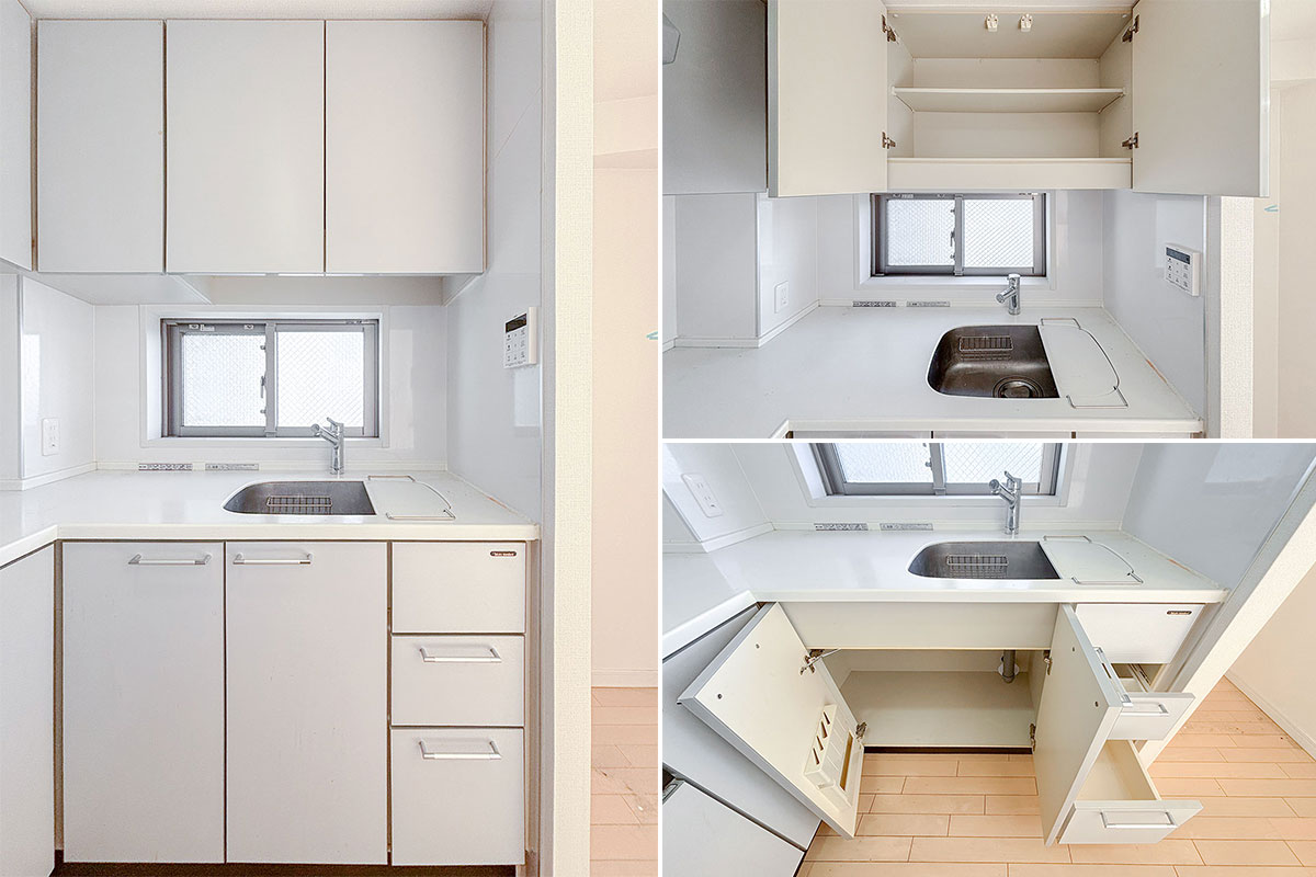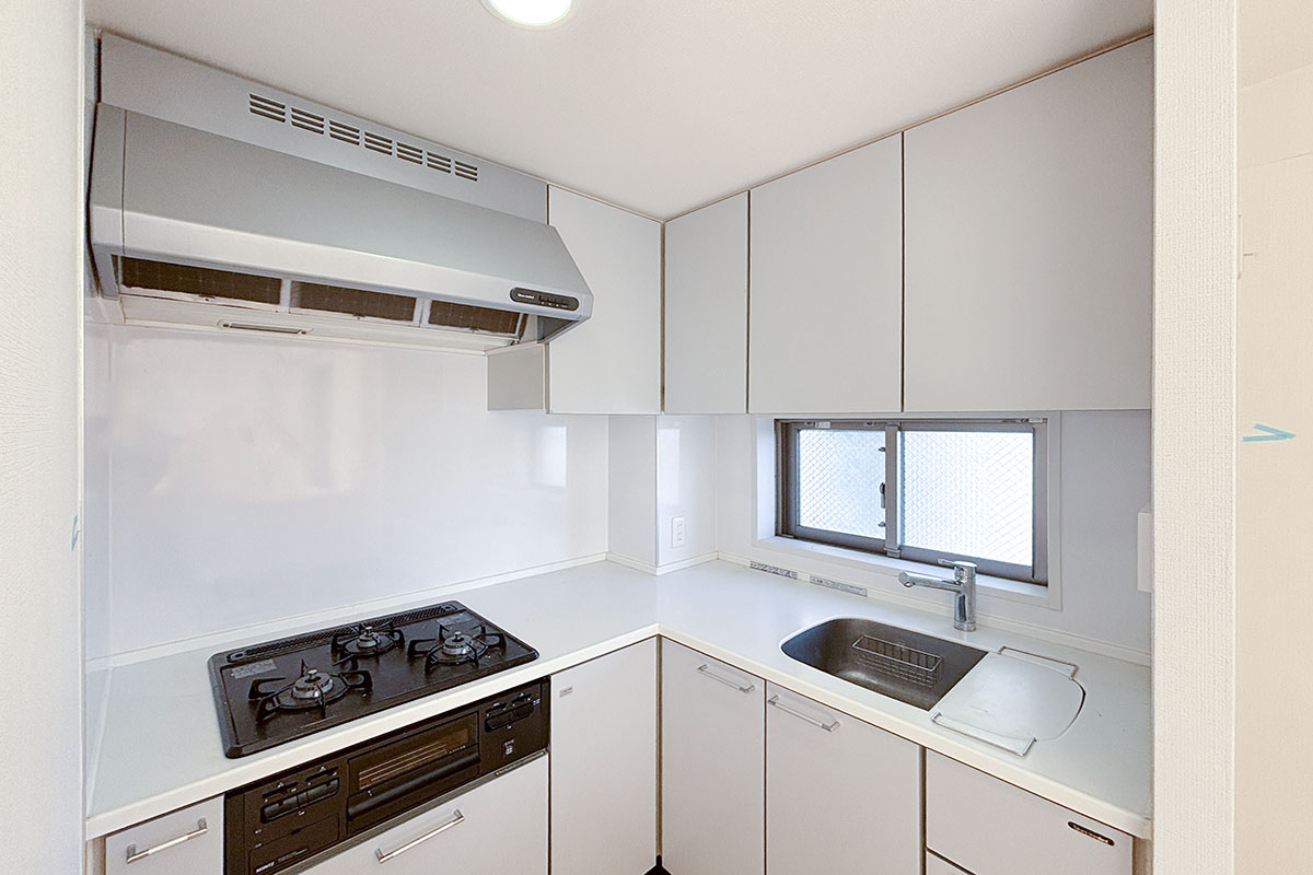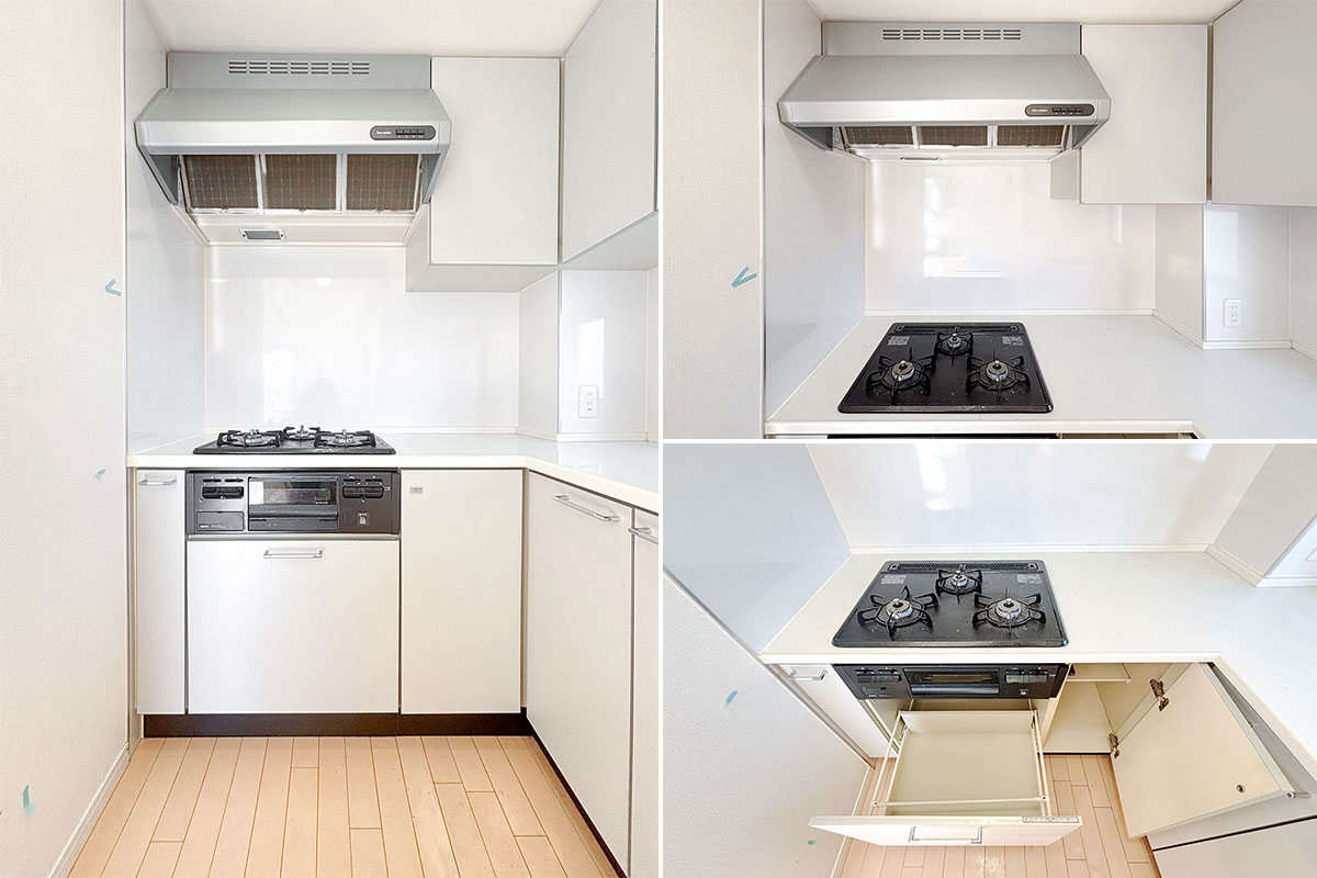 キッチンもL字型、上下に収納たっぷりです!