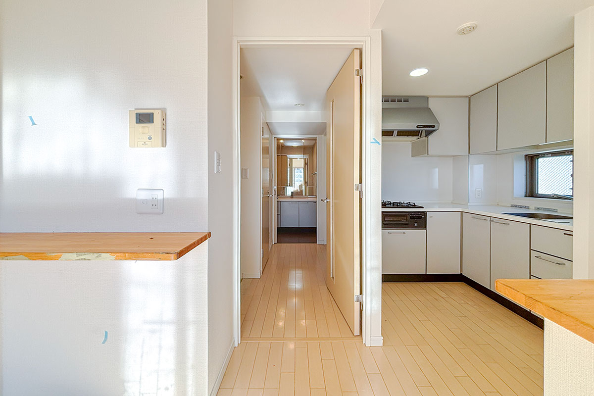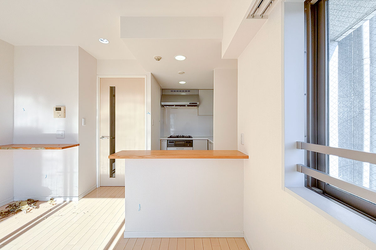 カウンタースペース付きのキッチンは少し奥まった空間になっていて、ほどよいおこもり感がありました。