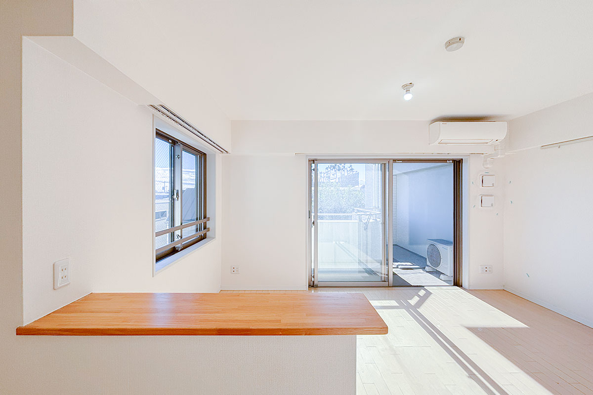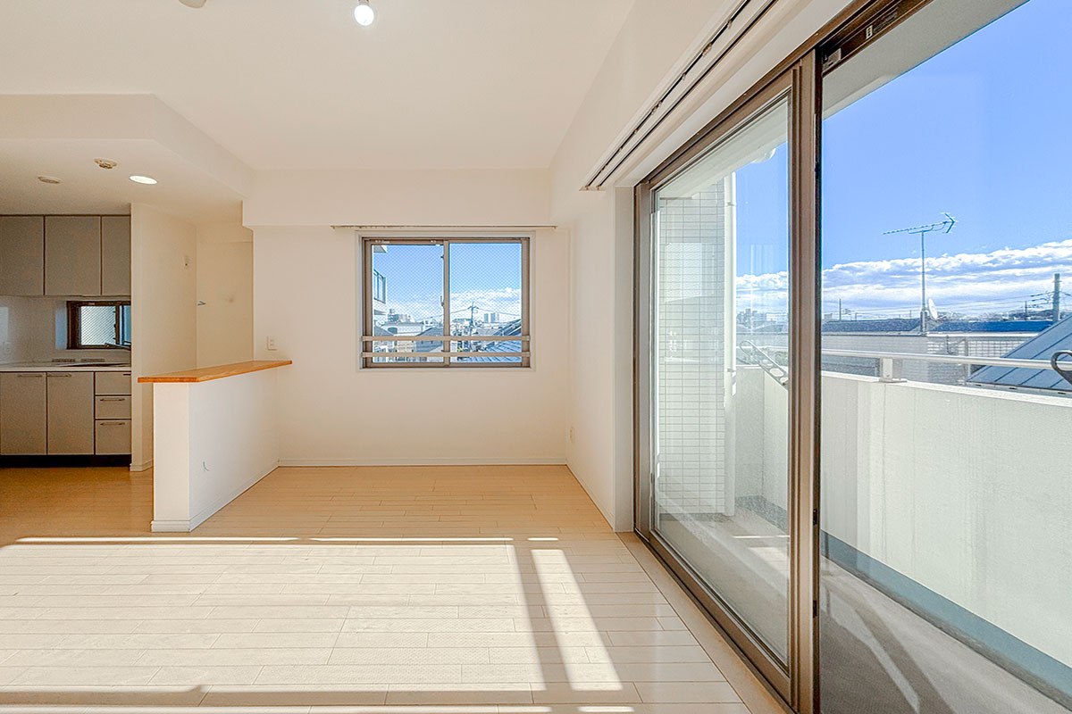 二面採光のおかげで爽やかな青空がお部屋に彩りを添えていました。