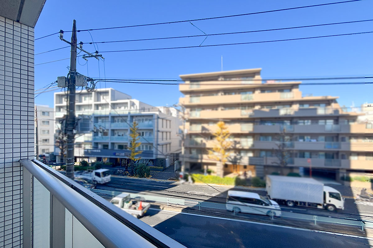 バルコニーが目黒通りに面しており、二重サッシのおかげで音の感じ方は幾分やわらいでいた印象