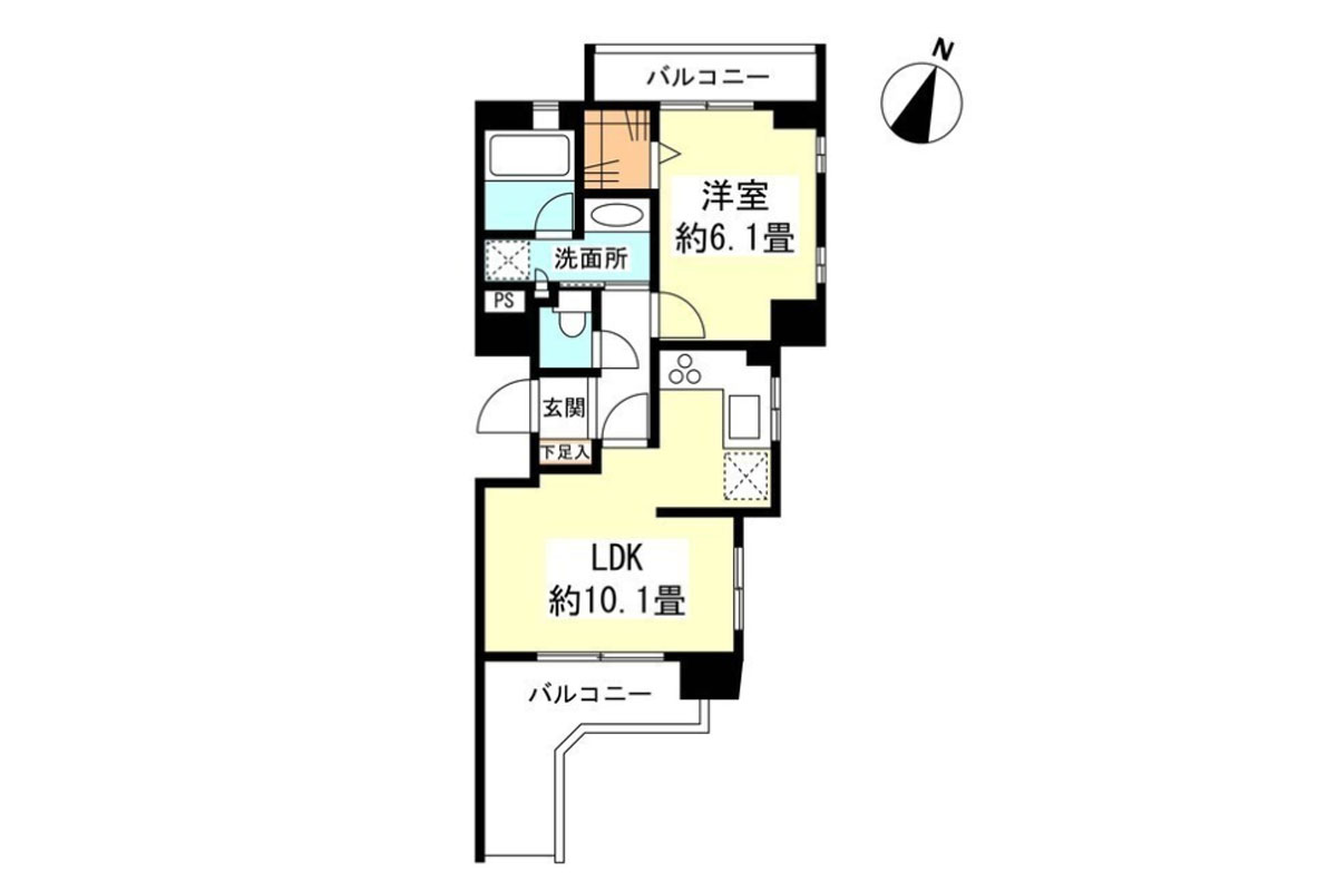 約10帖のLDKはキッチンを除くと、リビング部分は約8帖程度になるでしょうか。