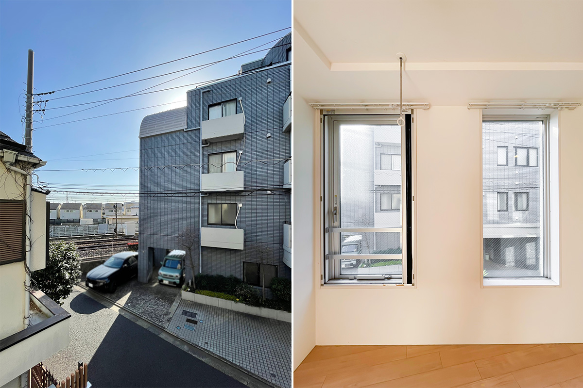 窓を開けると電車の走行音が聞こえてきます。轟音ではありませんが、音の感じ方には個人差がございますので、気になる方は現地にてお確かめください。