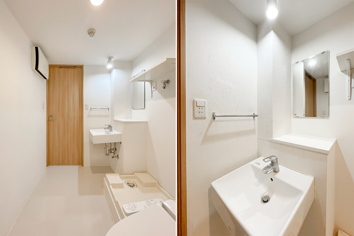 洗面・お手洗いと水回り空間が1箇所にまとまっている分、平米数に対して床面積は広め。
