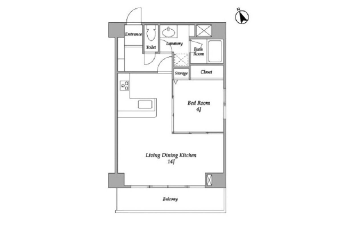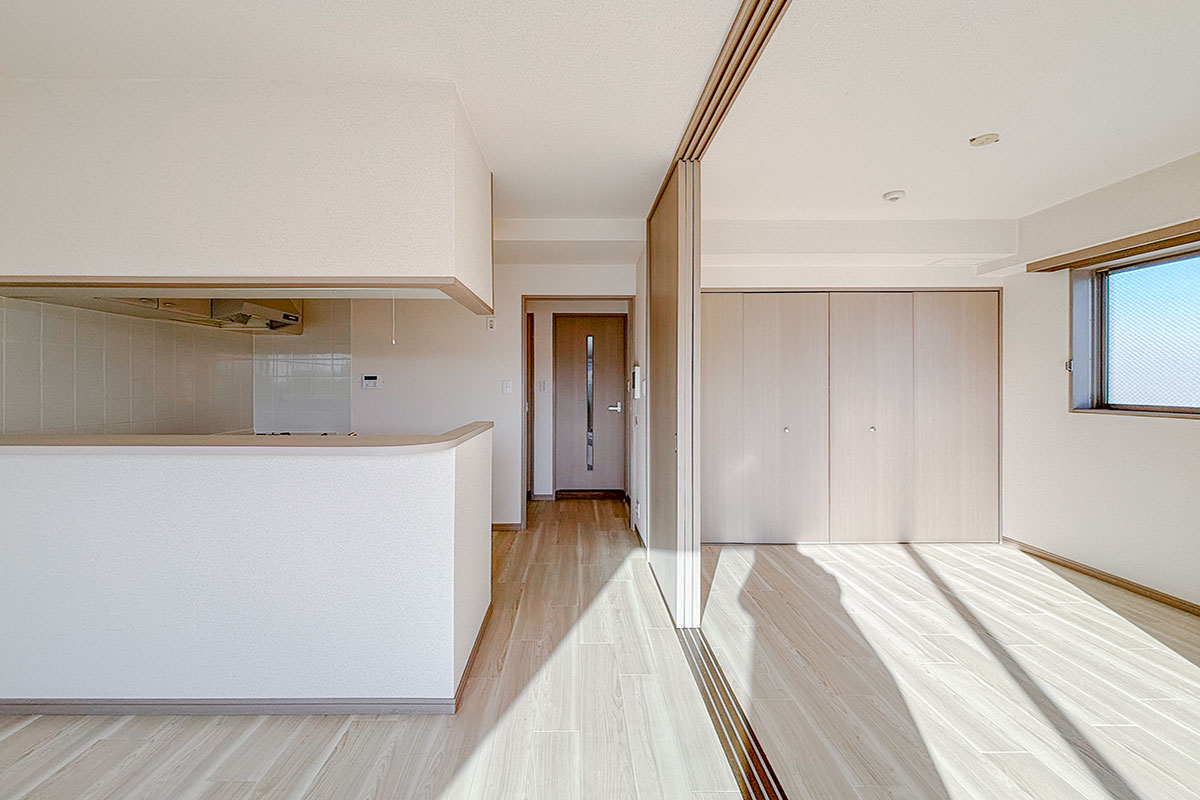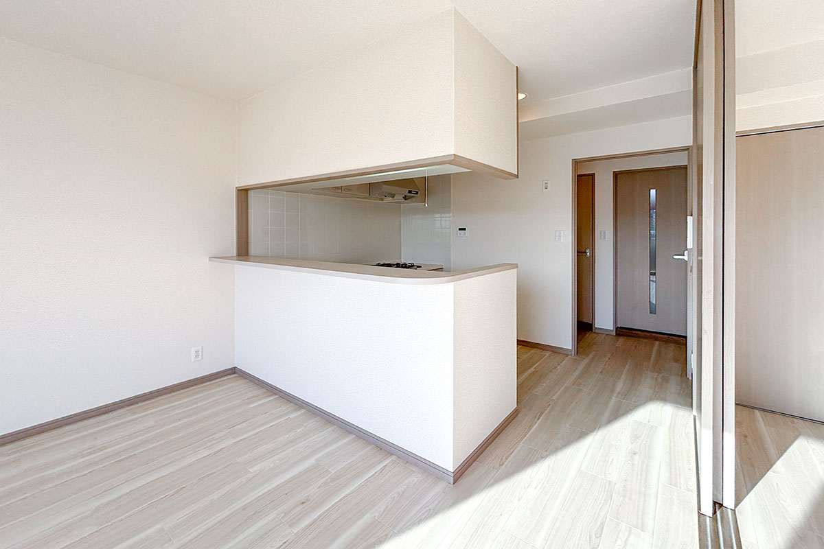 お部屋は4階の角部屋、約47㎡の1LDK。