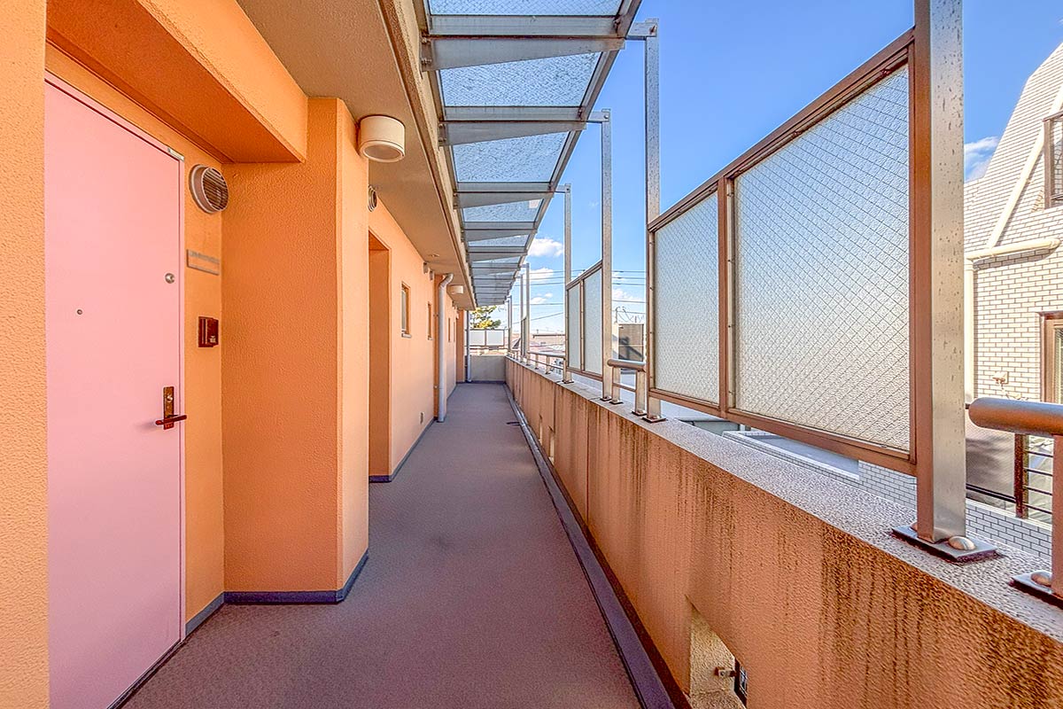 共用部はピンク×オレンジでとてもビビッドな配色!