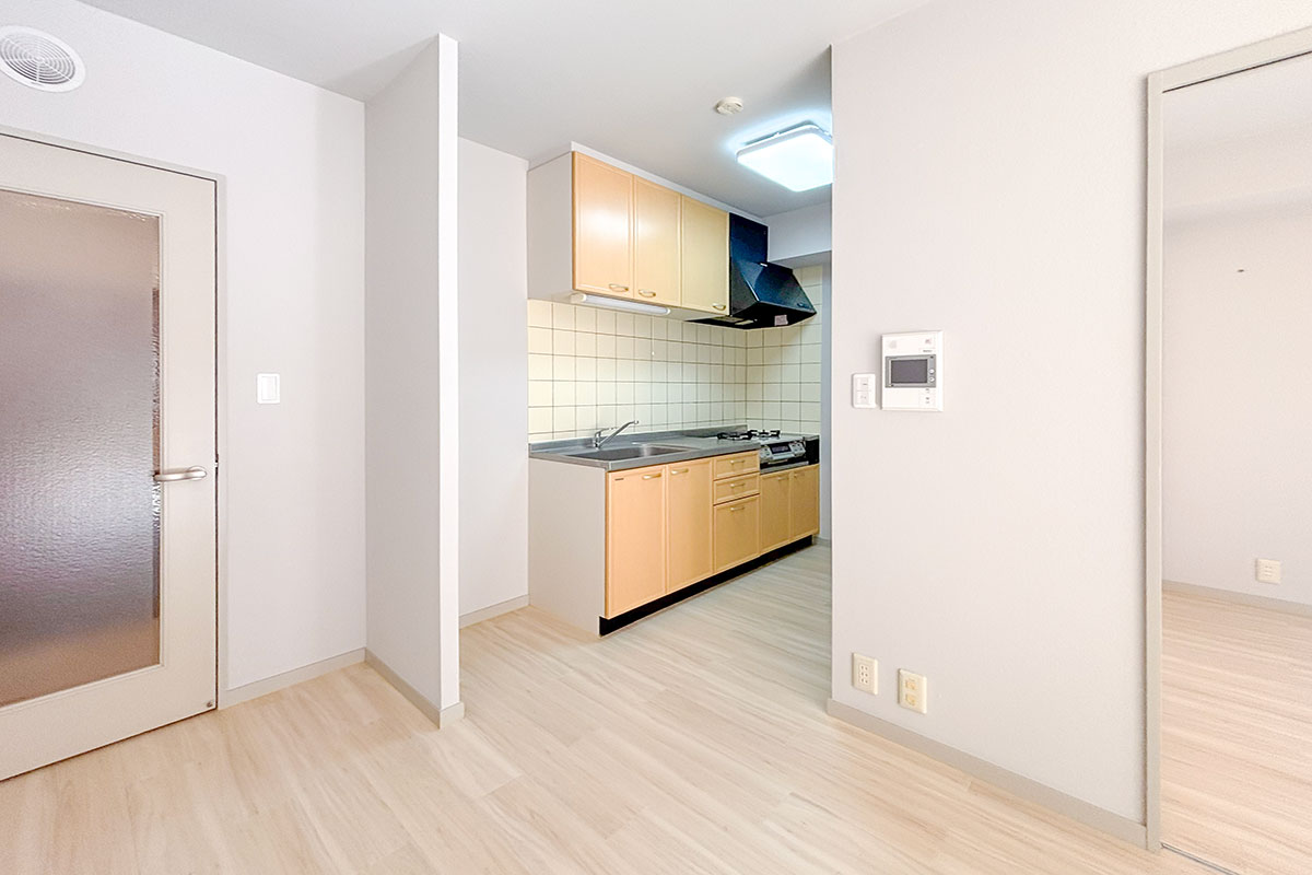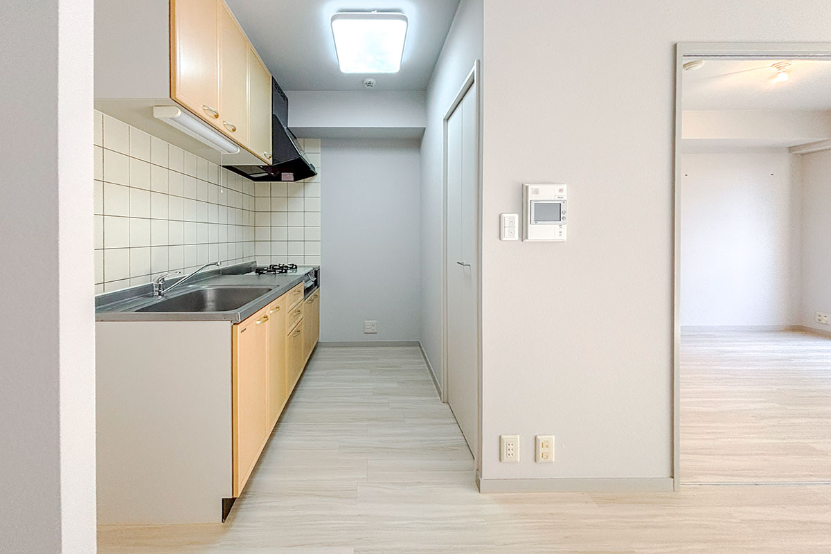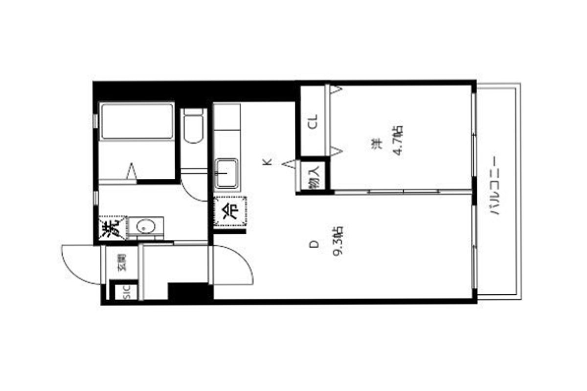 お部屋は3階、9.3帖のダイニングキッチンと4.7帖洋室の1DK。