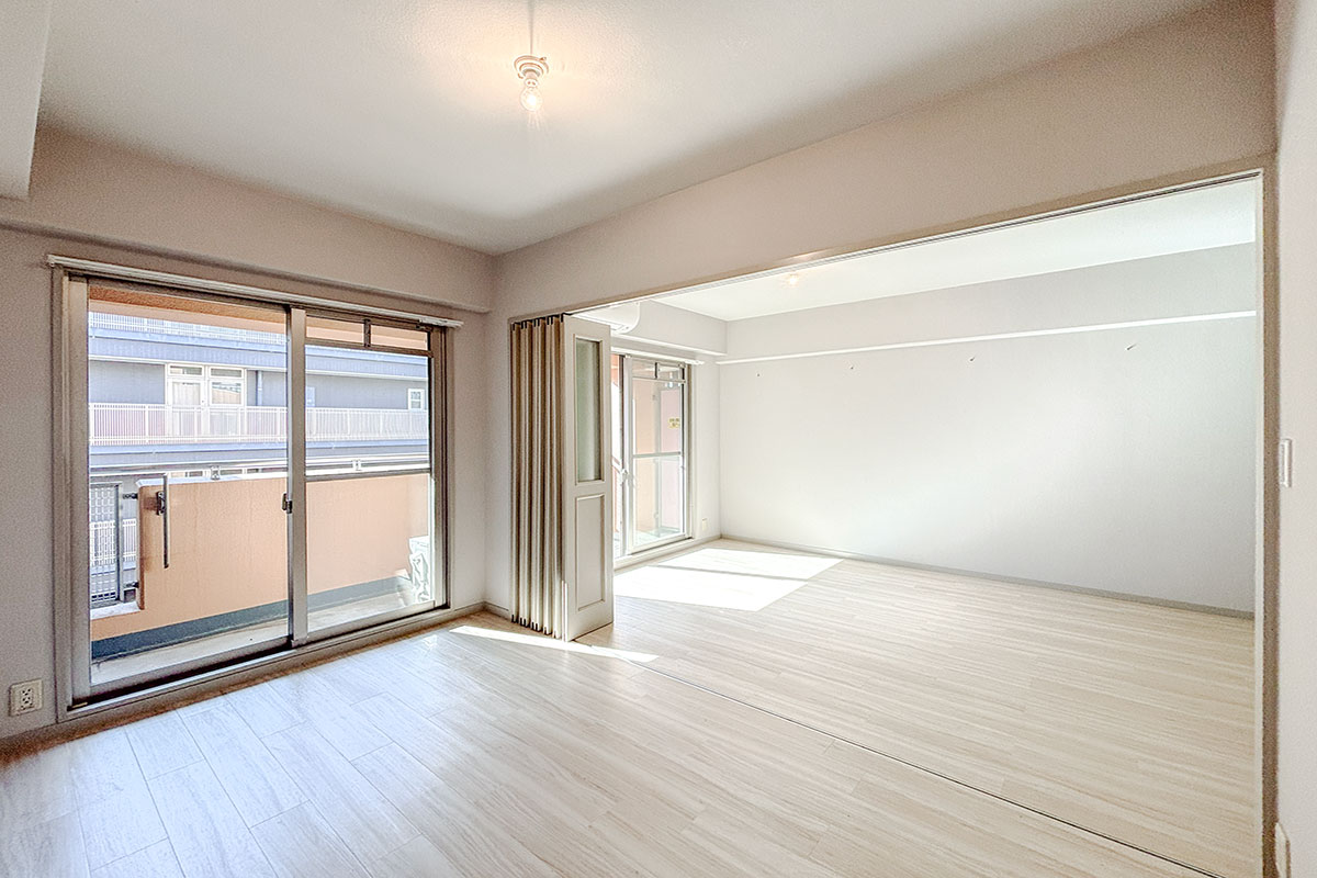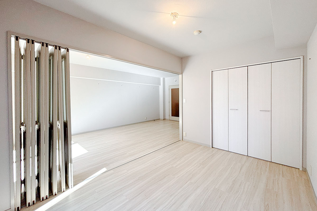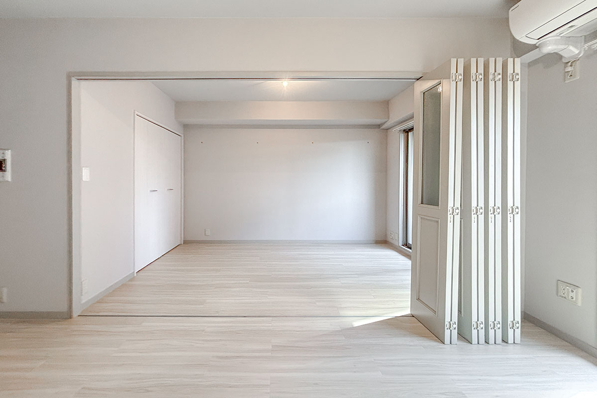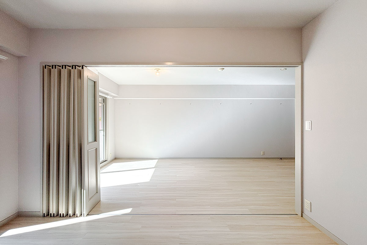 ダイニングと洋室は折れ戸を開け閉めして区切るスタイルです。