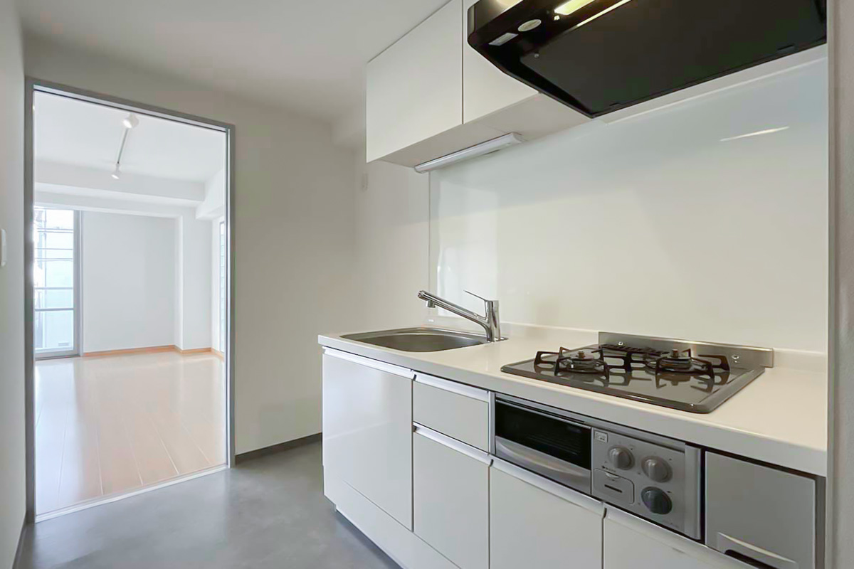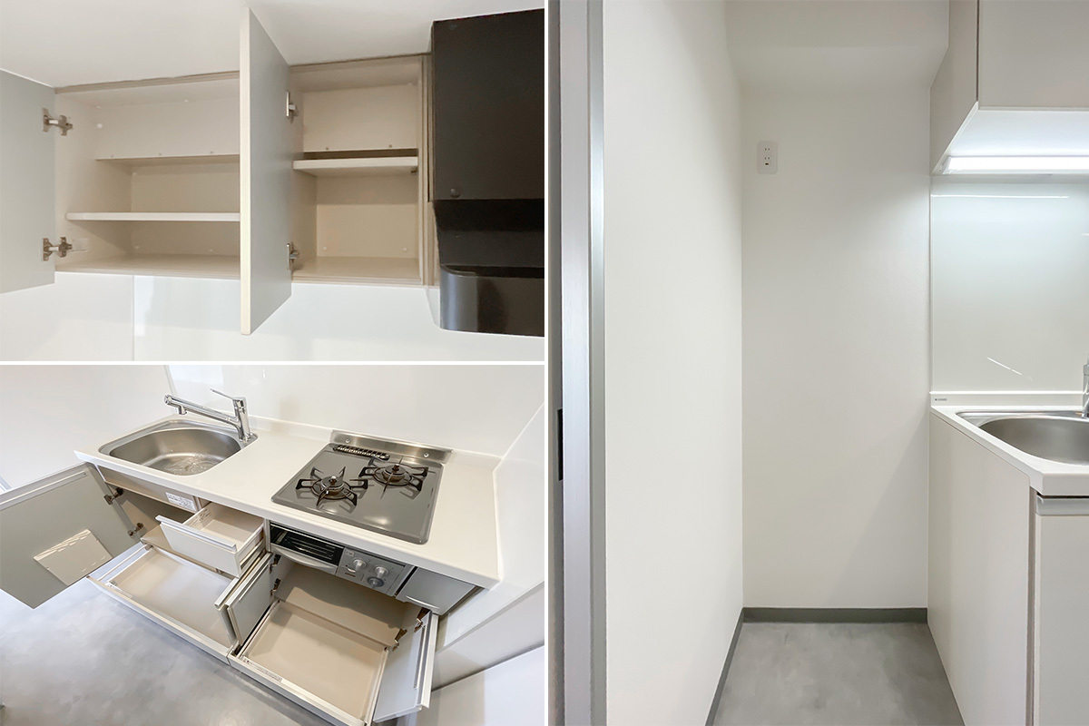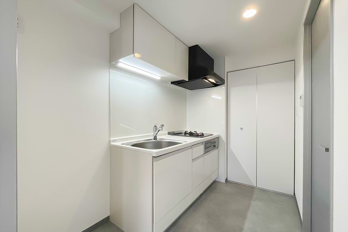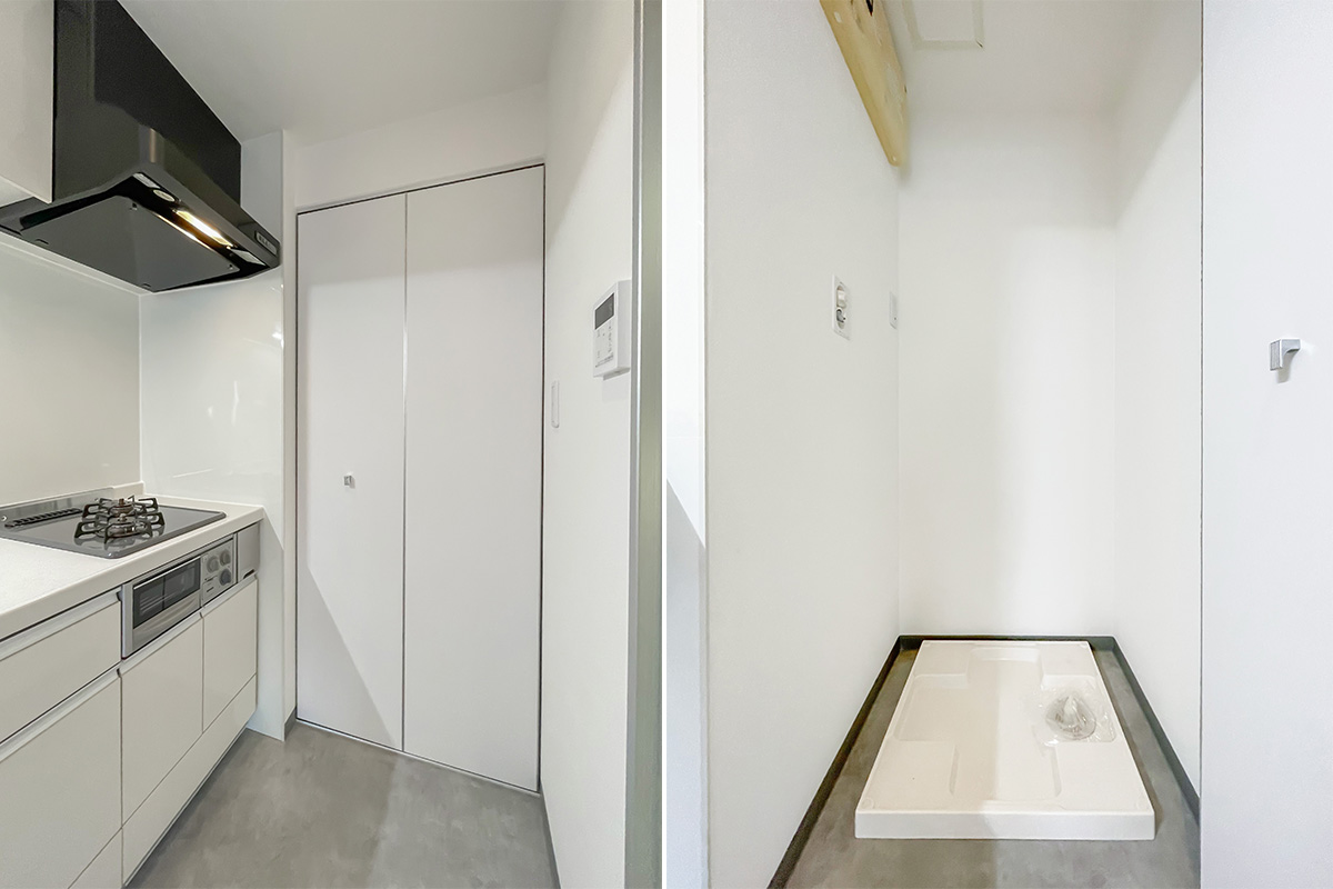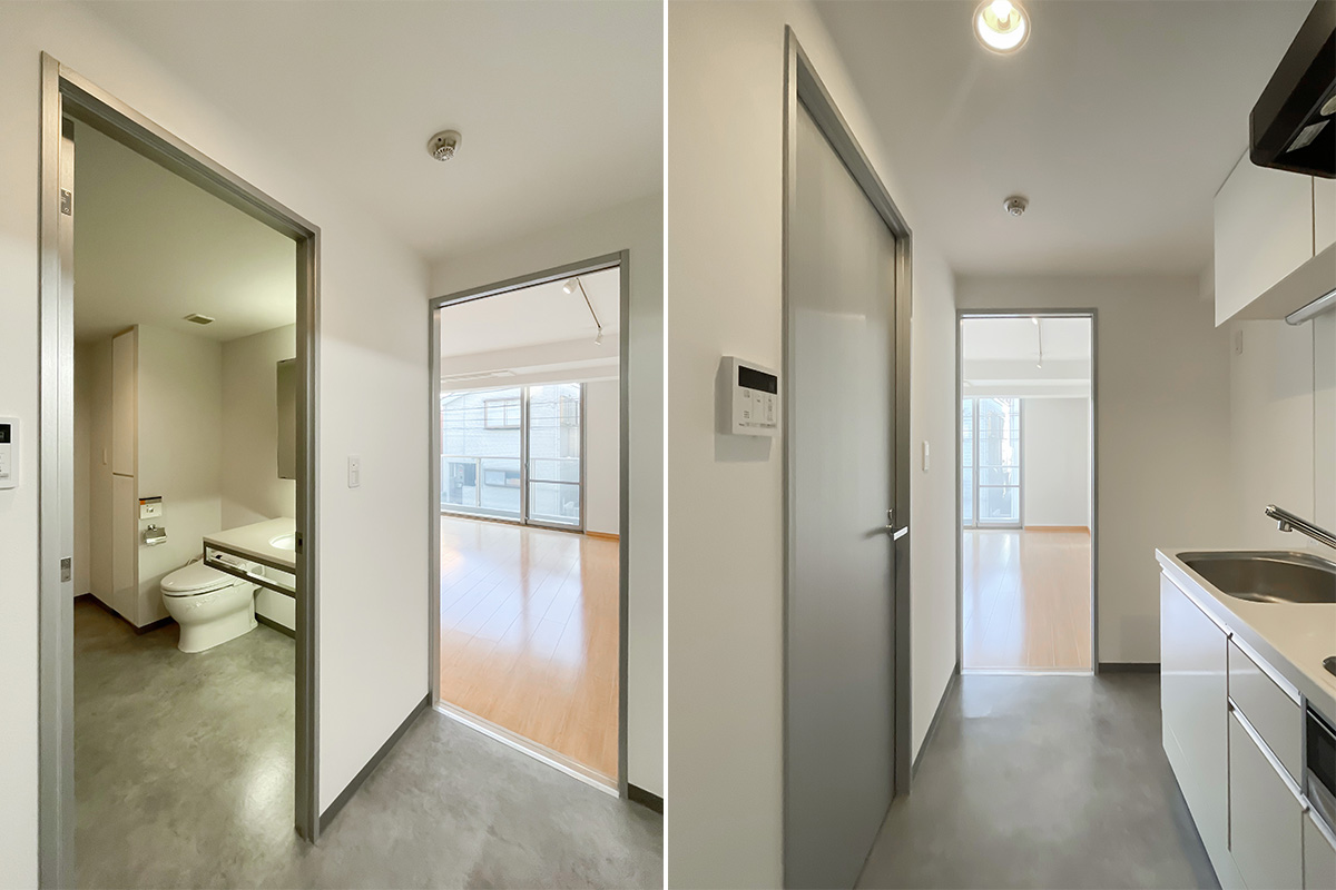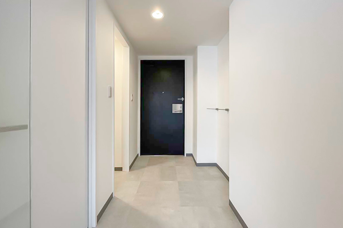 部屋の形は至ってシンプルな四角い箱ですが、いわゆるワンルームにありがちな”玄関開けてすぐ居室”や”キッチンや水回り空間が小さい”ということはありません。
