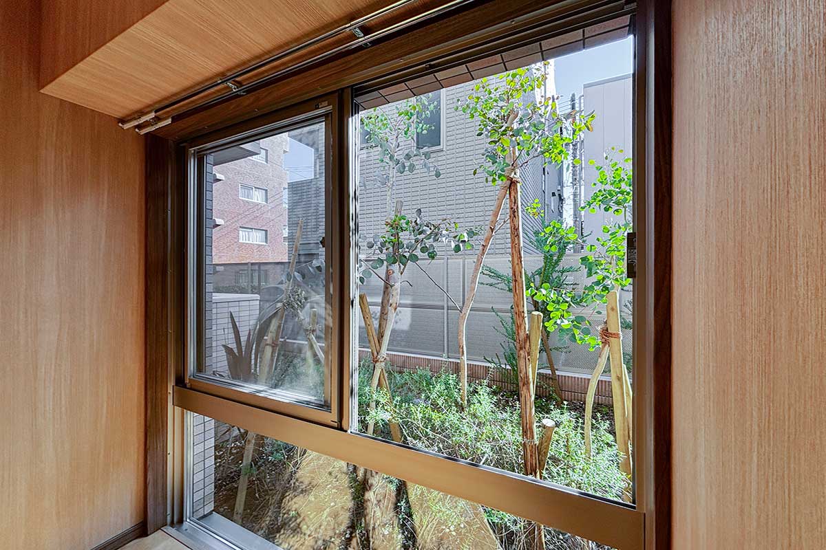 窓外には手入れの行き届いた植栽があり、室内に癒しの木洩れ日が差し込んでいました。
