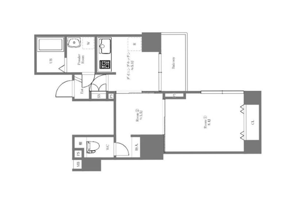 お部屋は5階の角部屋、ふたり暮らしにもちょうどいい約40㎡の1LDK。