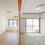 玄関からリビング、洋室まではL字状の動線になっていて、スライドドアで仕切ることもできます。