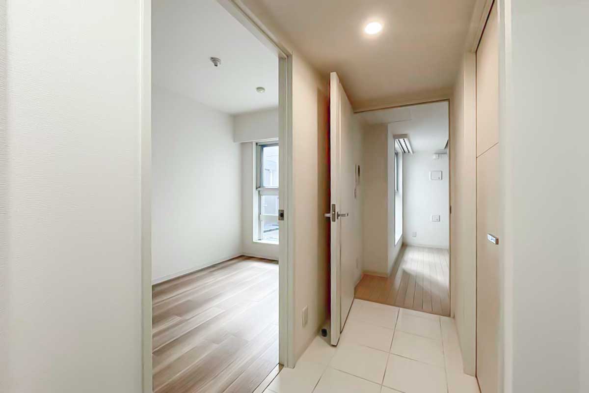 物件は桜新町駅と用賀の中間地点、砧公園通り沿いのマンションで、共用部はリノベーション済み。