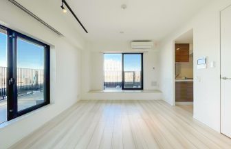 お部屋は、9.5帖のリビングダイニングと4.5帖の洋室の約34平米の1LDK。