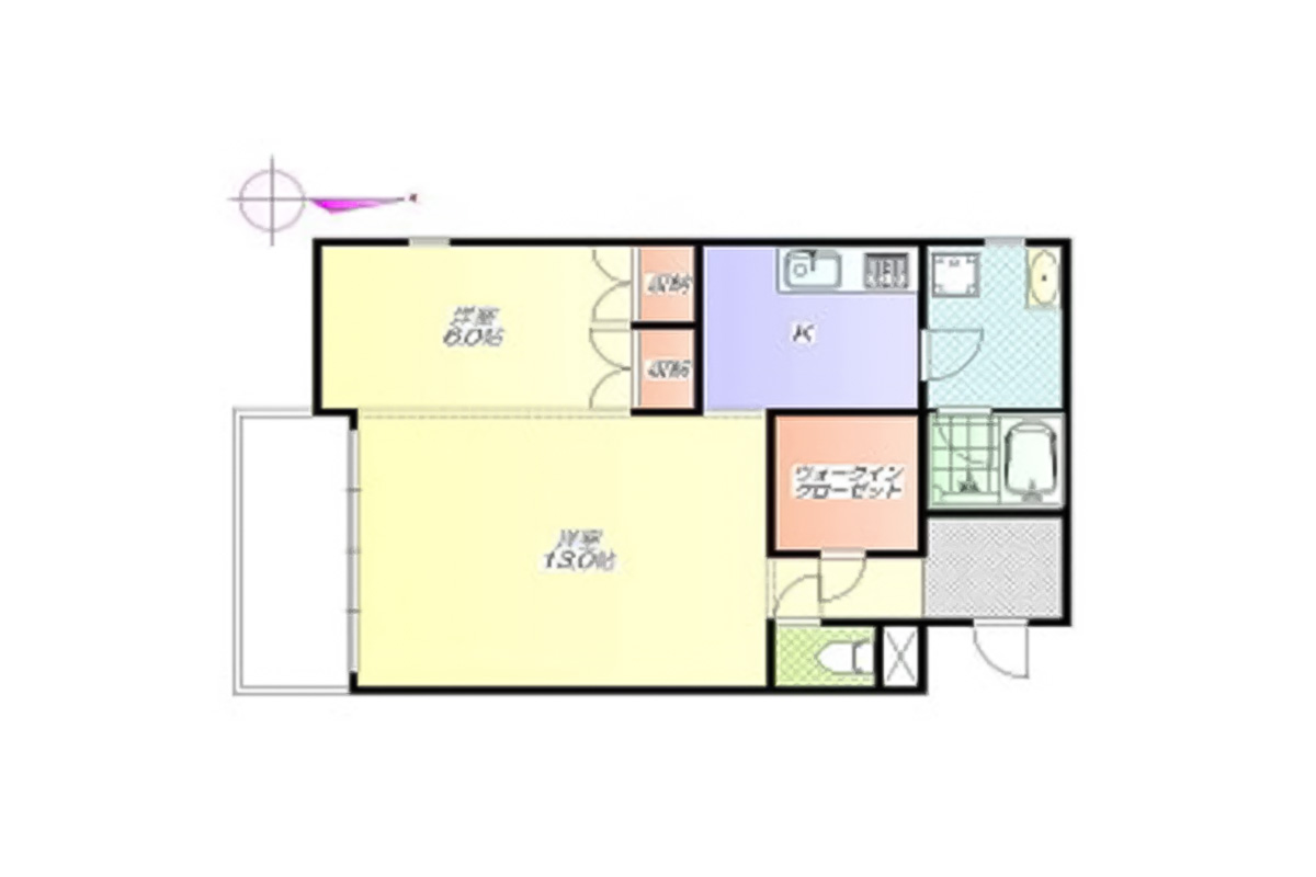洋室は19帖の広々とした1つの空間として使うこともできますし、カーテンレールを利用し就寝時に6帖のプライベート空間を作ることも可能です。