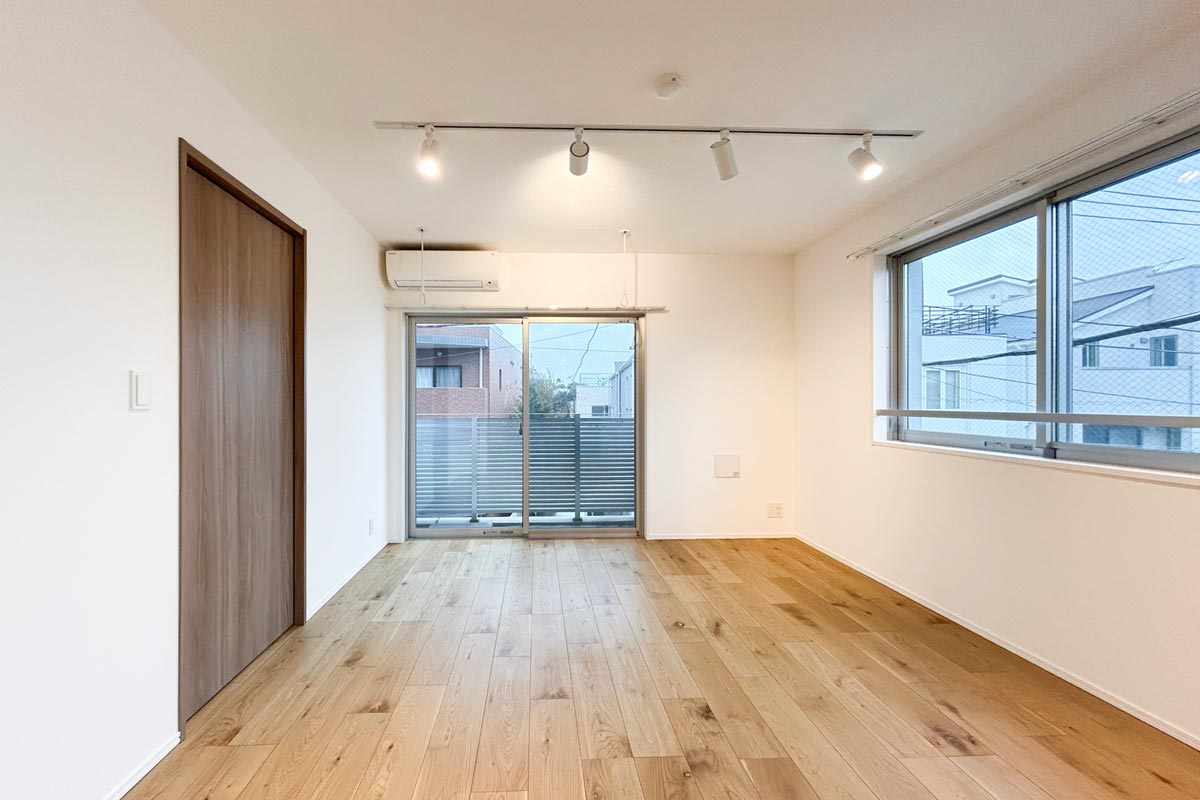 床は幅広の無垢材を使っているので、より落ち着いたスッキリしたデザインの空間に。