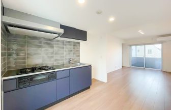 キッチンスペースはドア外の独立空間で分かれており、食卓とくつろぎスペースとをゆったり分けて配置ができますね。