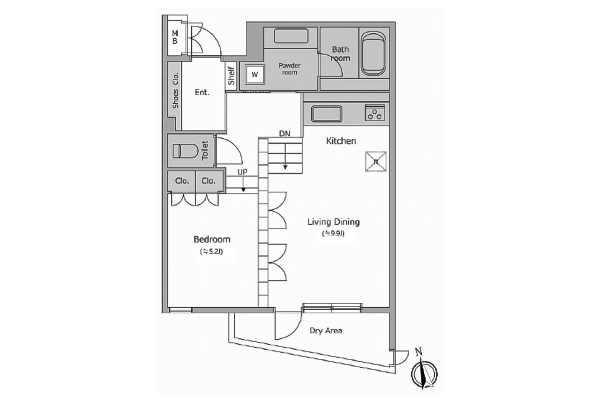 お部屋は約41.3㎡。平面図で見ると1LDK、空間としてはワンルーム。