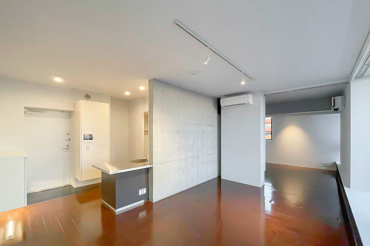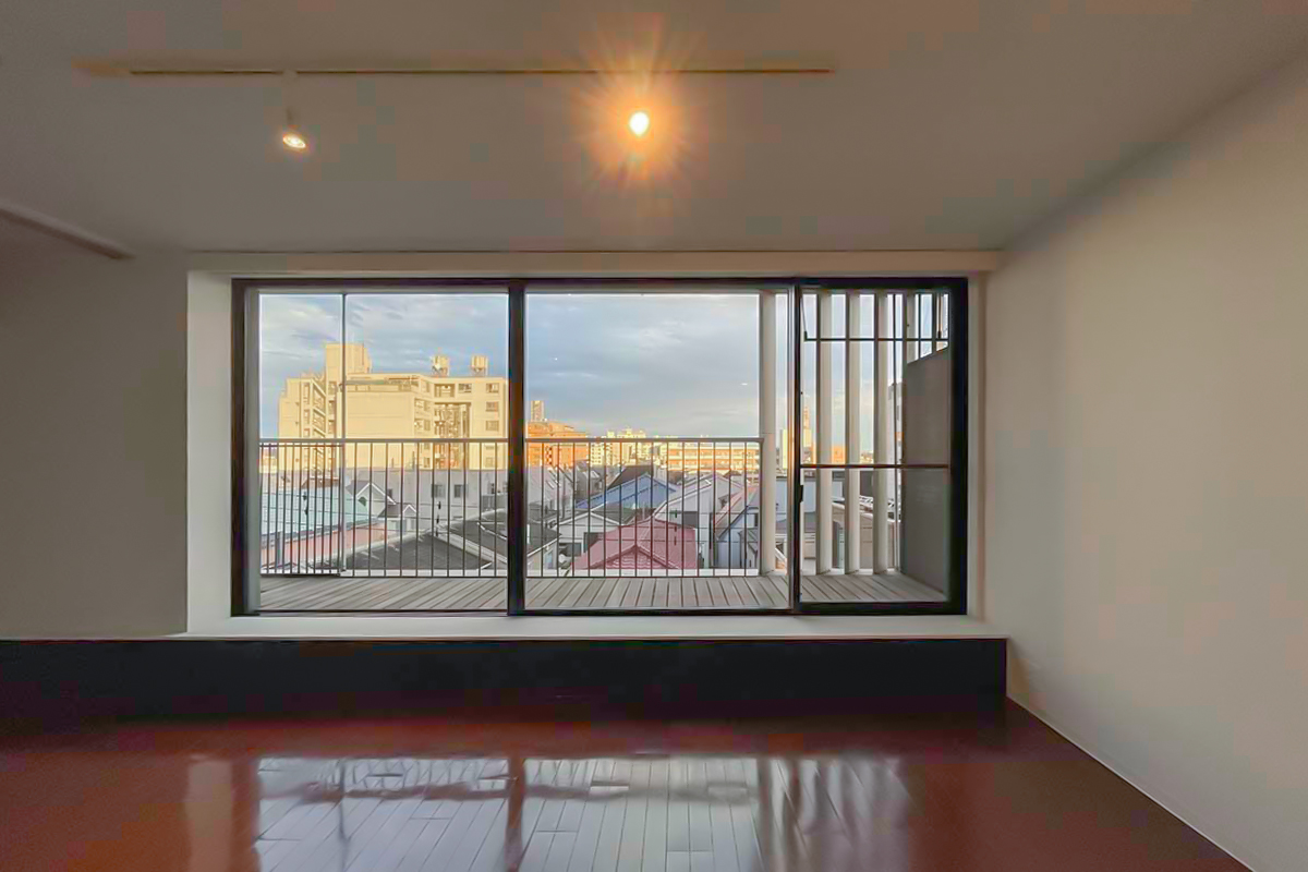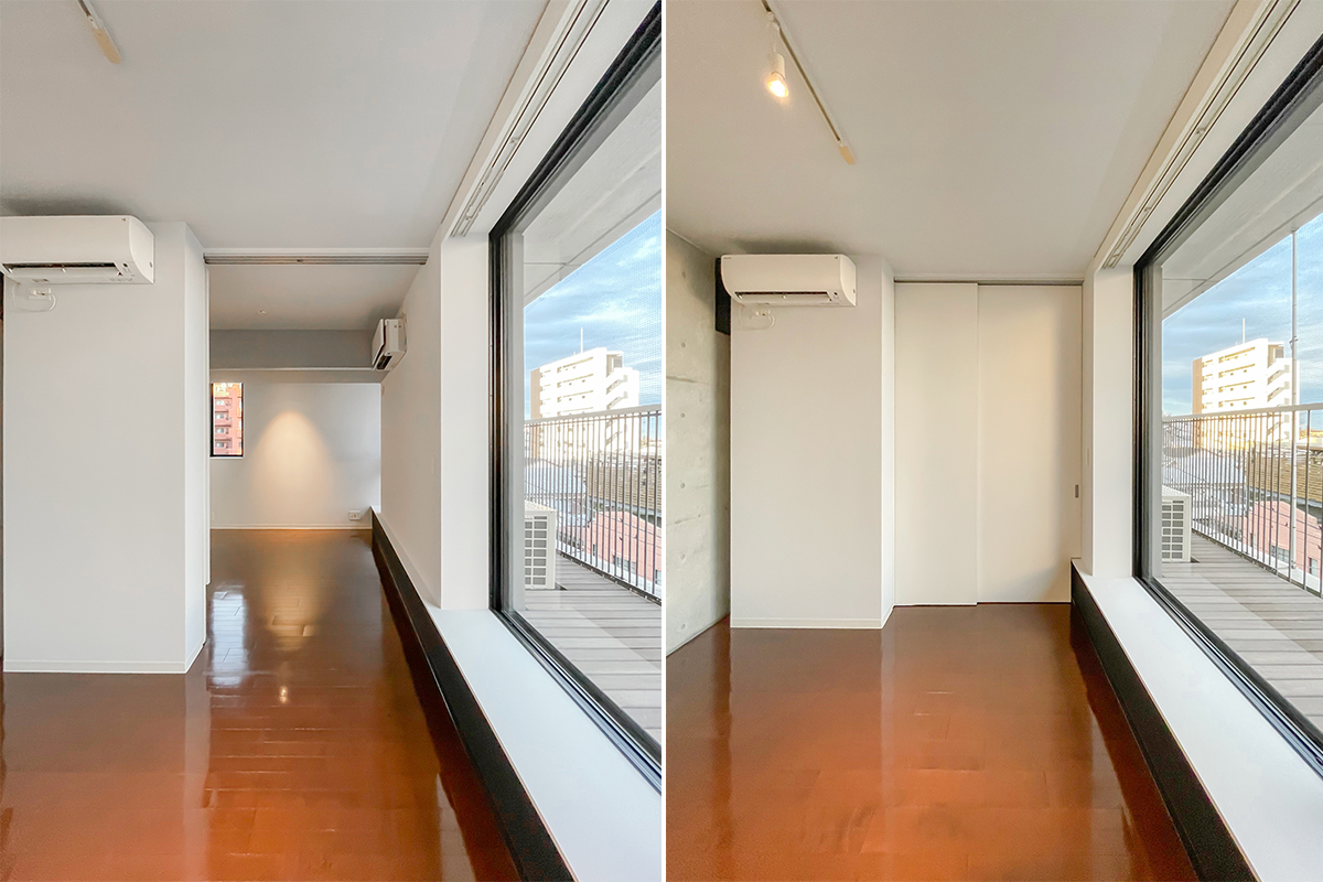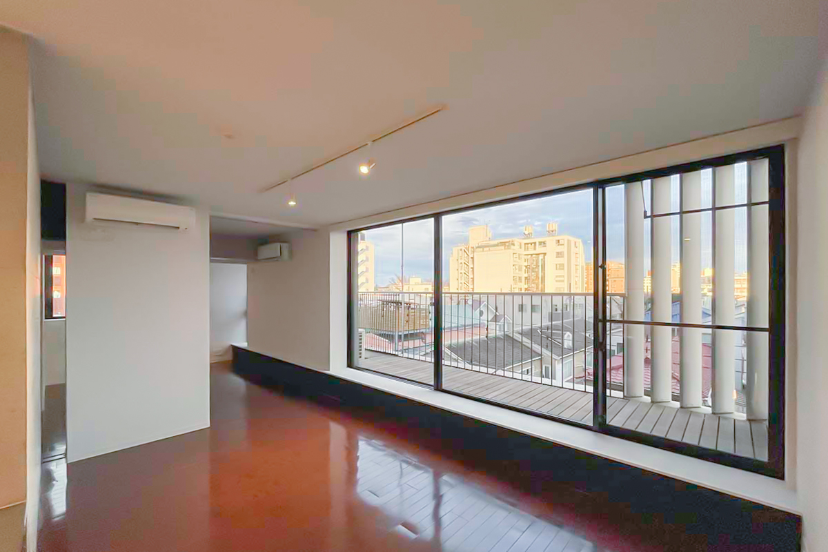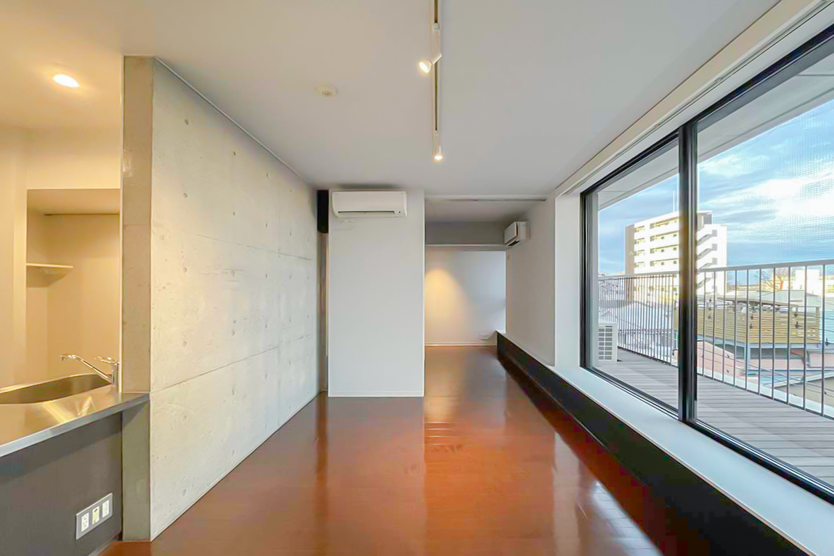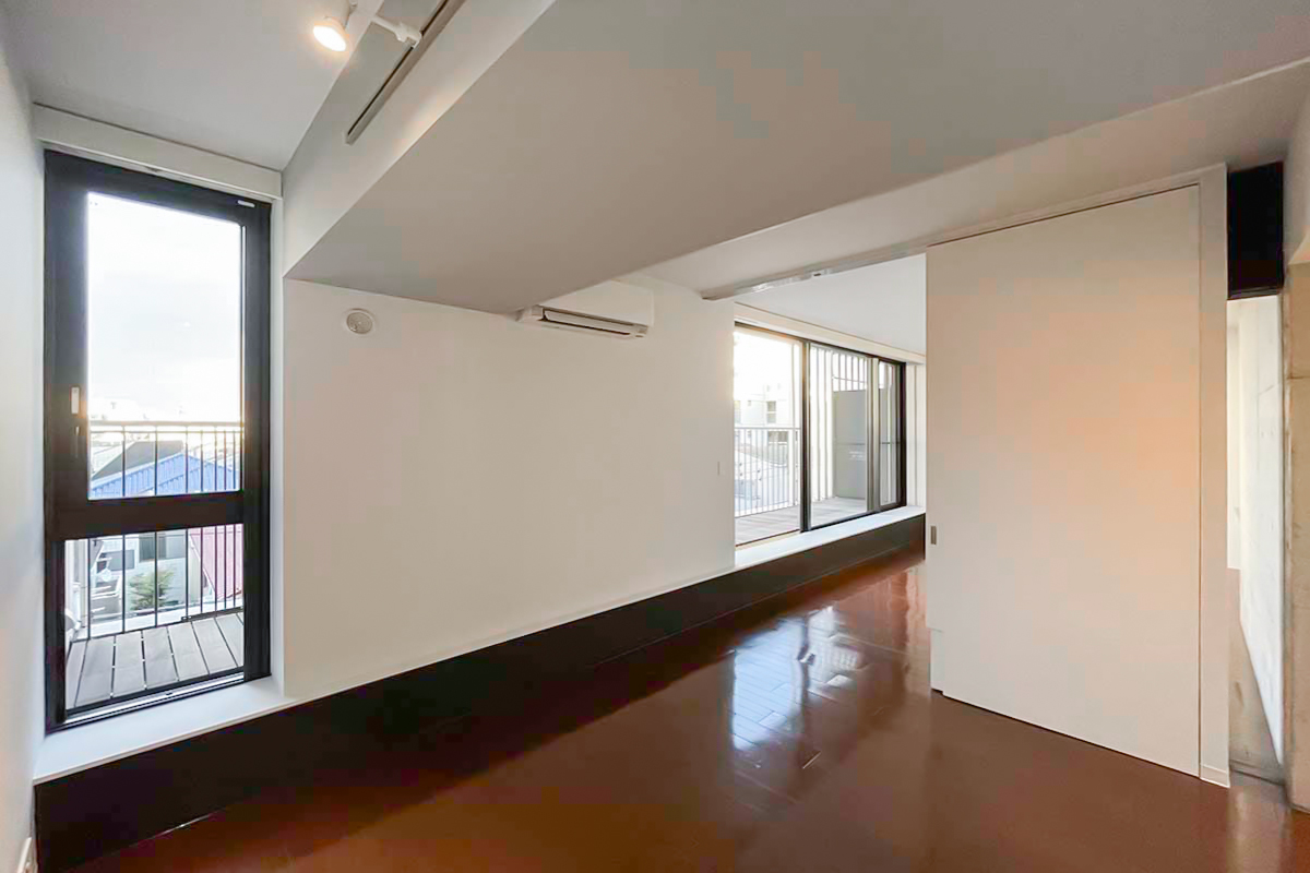 部屋の垣根を越えて、建物自体に包み込まれているような感覚になる物件。