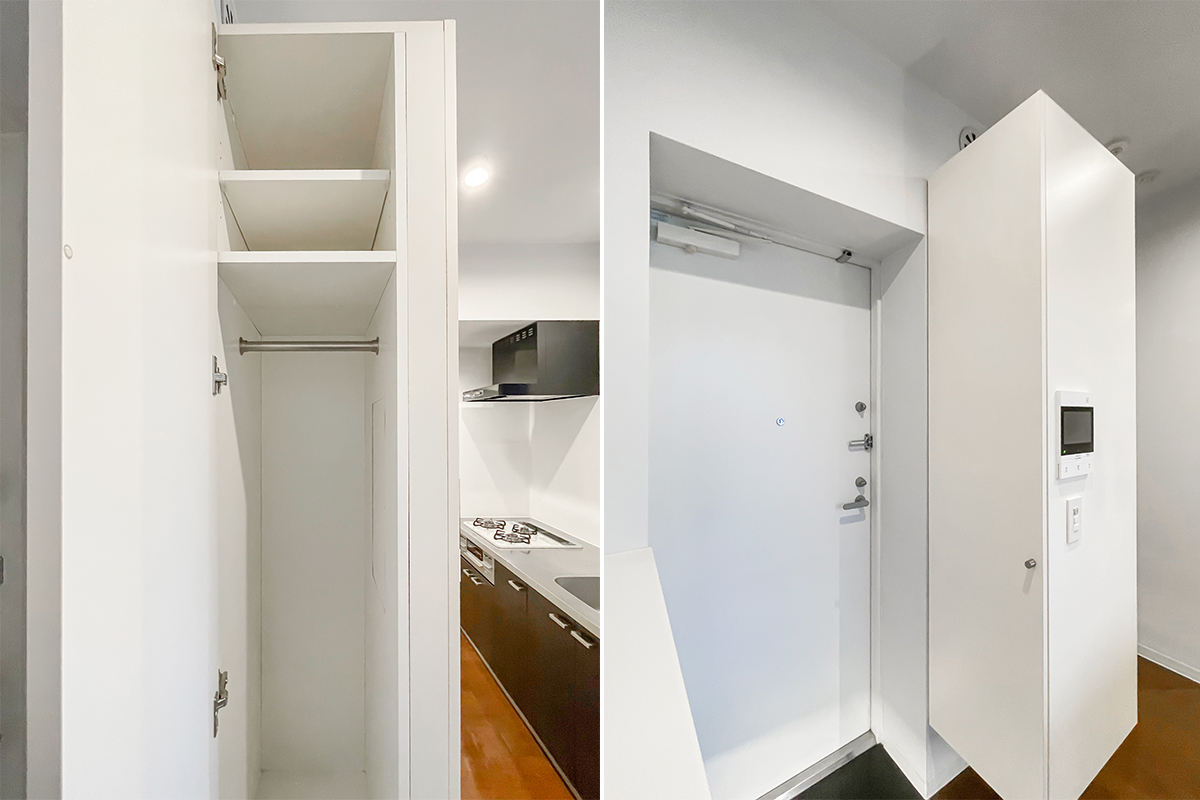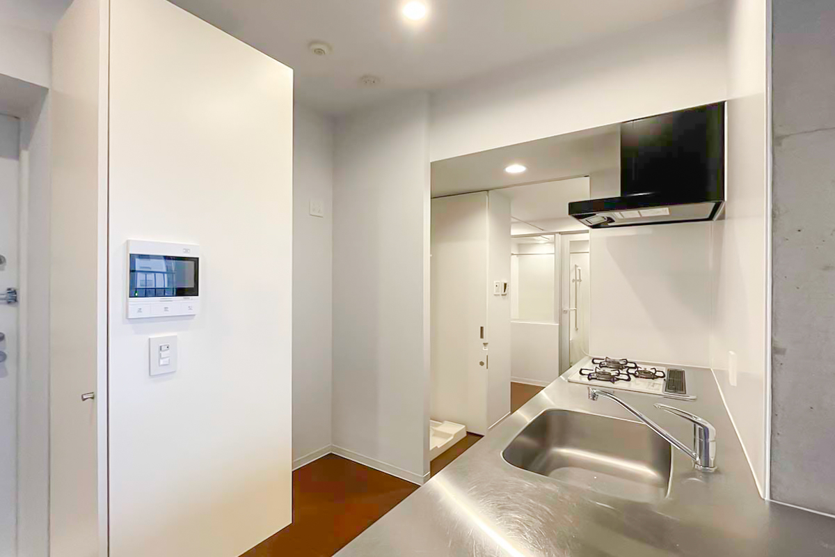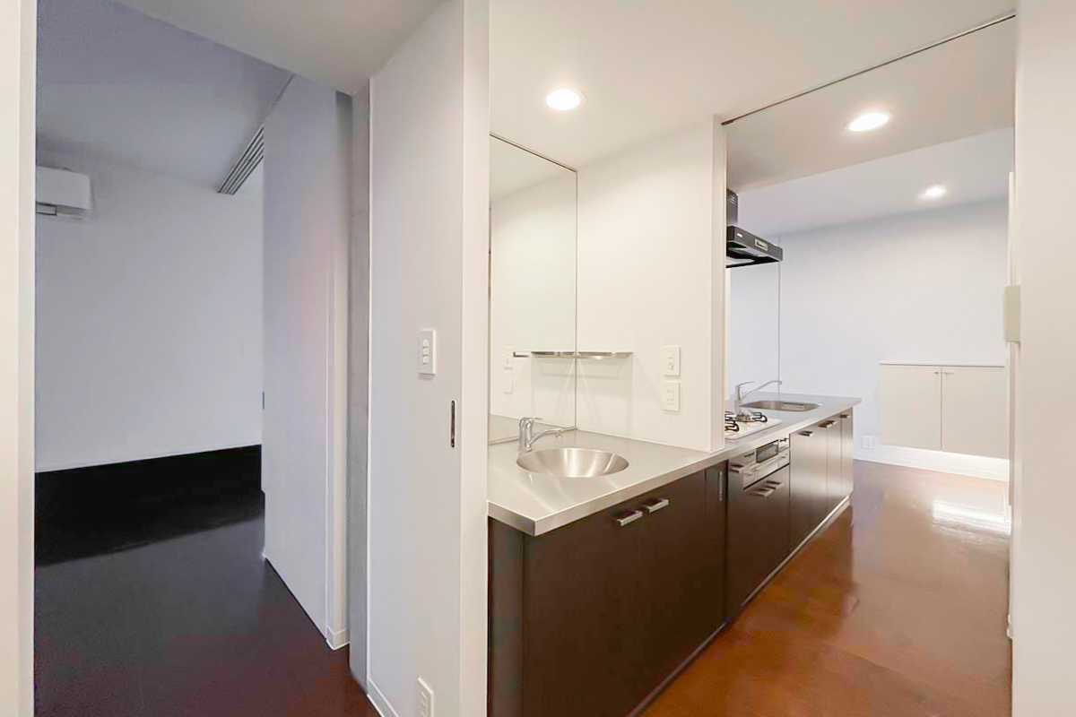 キッチン・水回り・ベッドルームそれぞれのスライドドアを開くと、回遊できる間取り。