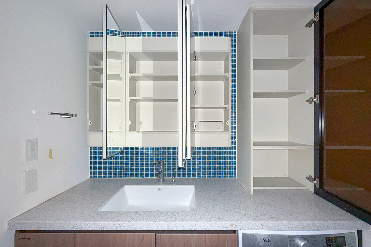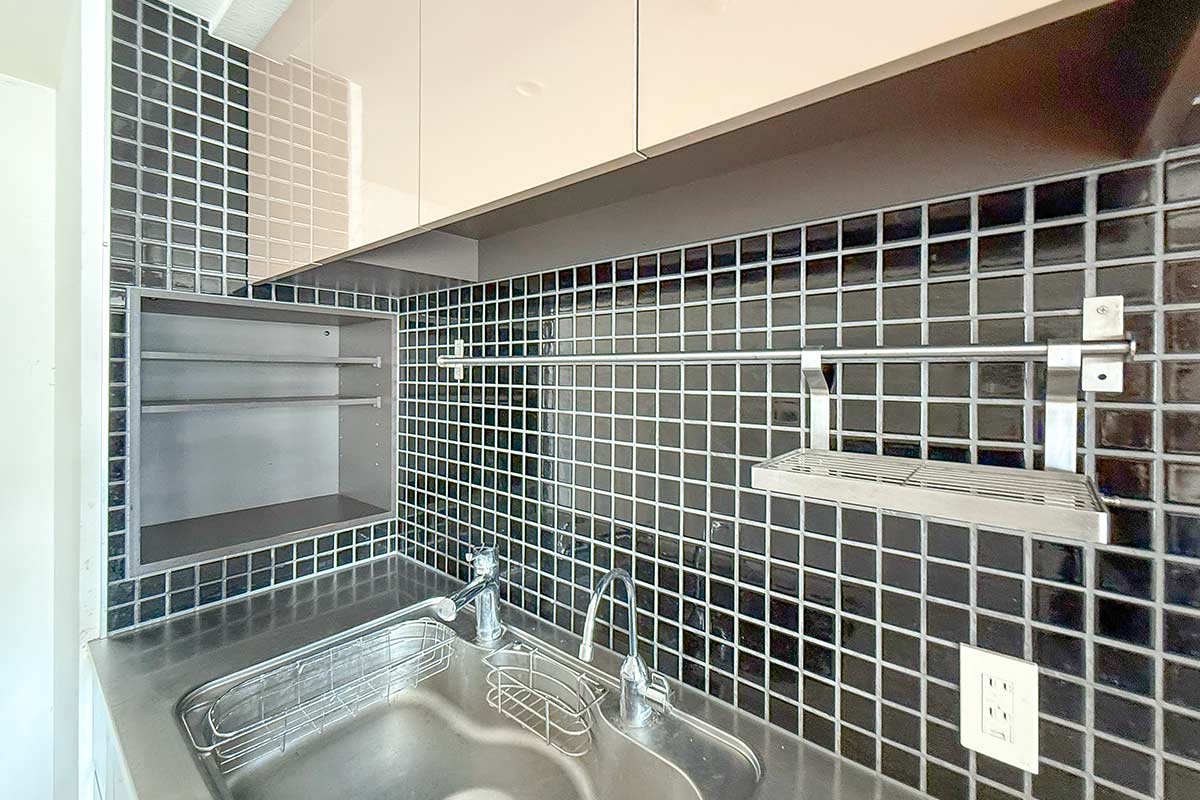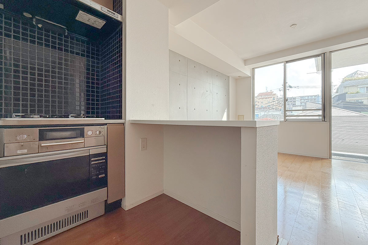 コンロはグリル付きの3口ガスタイプで自炊派の方に重宝する機能が備わっています。