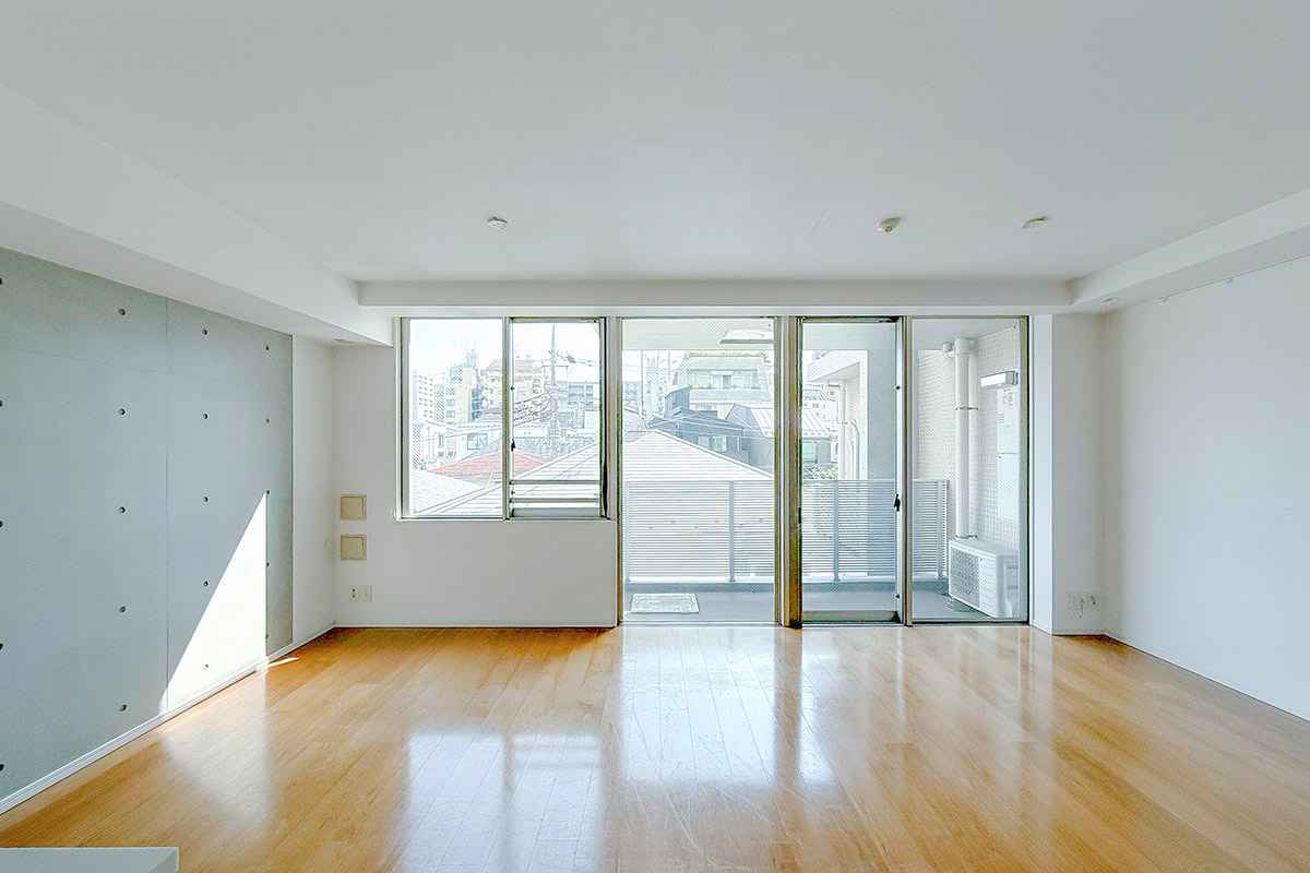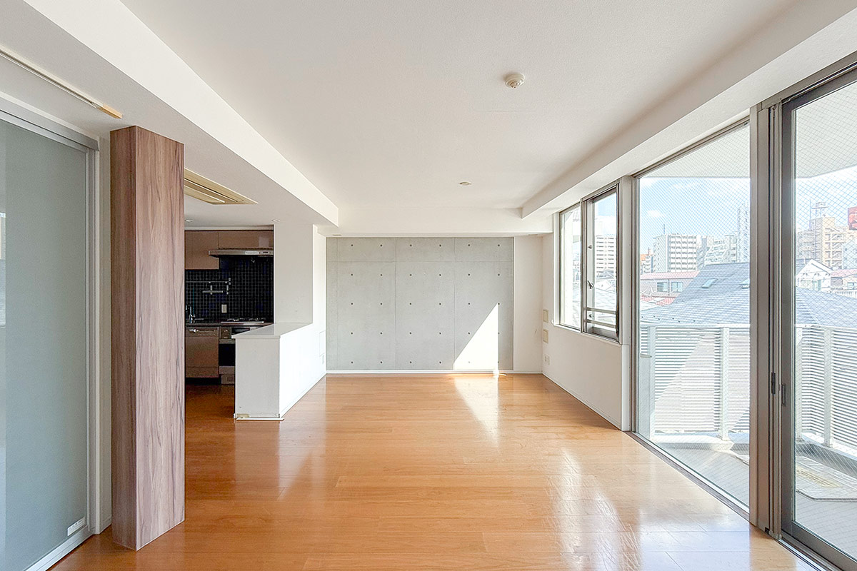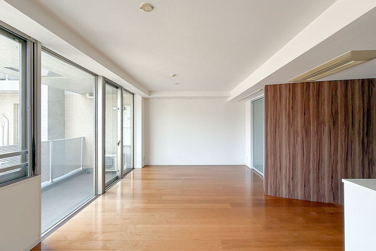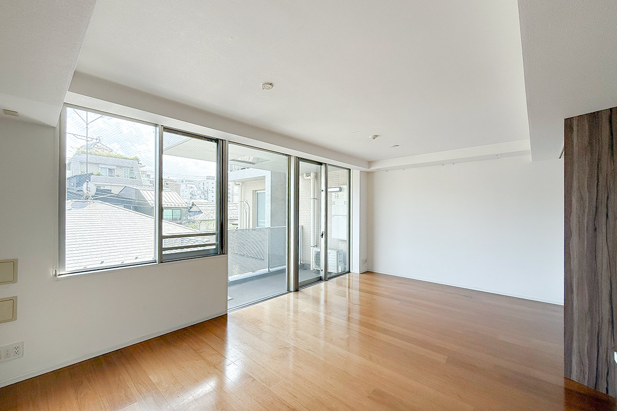 約15帖のリビングには南向きのバルコニーが付いていて明るさたっぷり◎