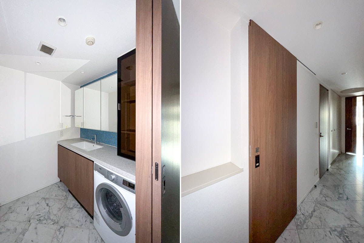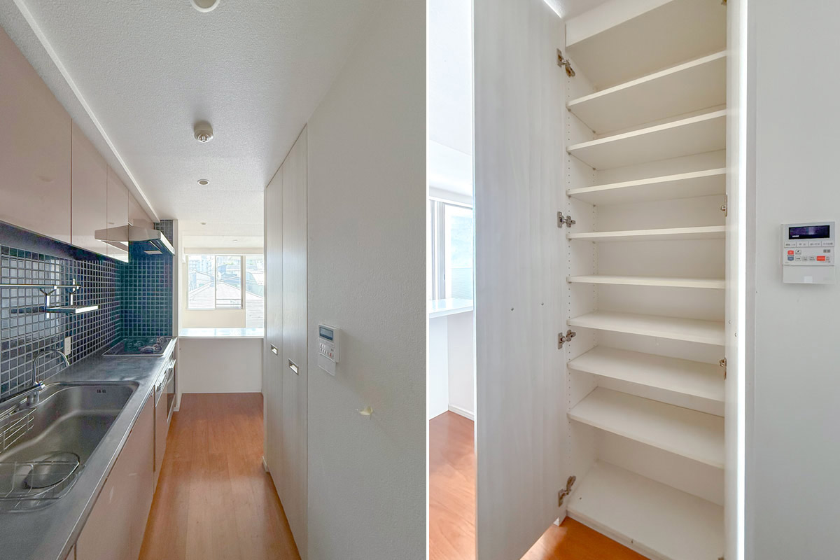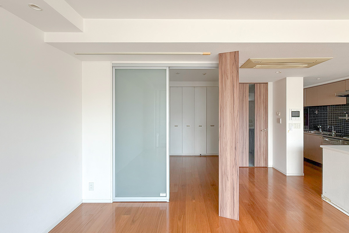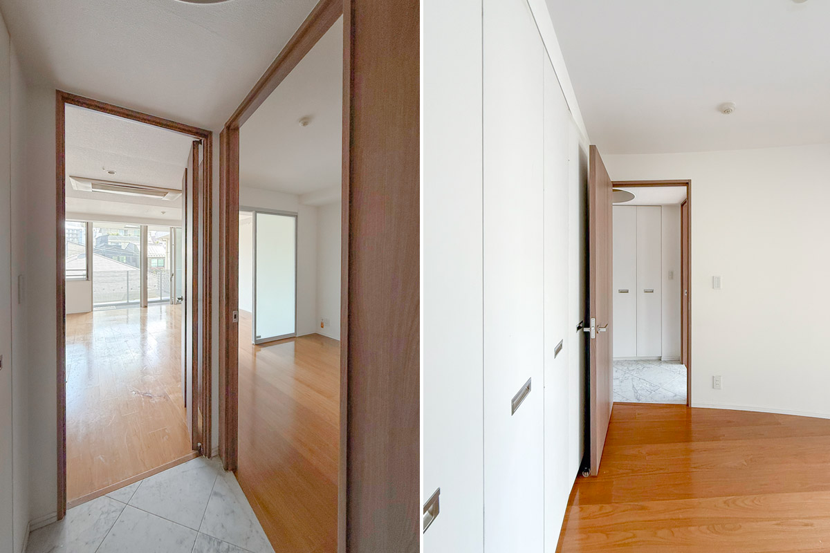 廊下側とリビング側の2箇所にドアがあり、回遊できる作りになっています。