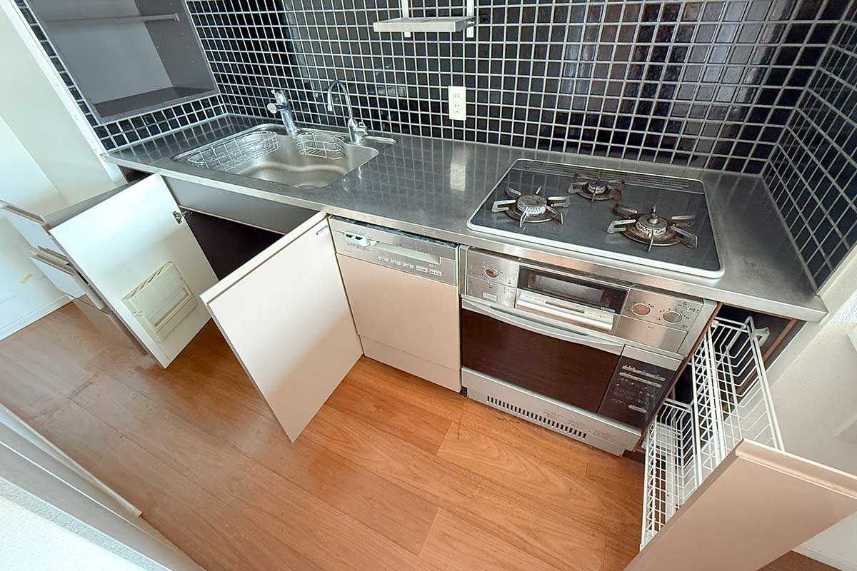 キッチンにはカウンターがあって収納も豊富、さらにはオーブンレンジや食洗機付き!