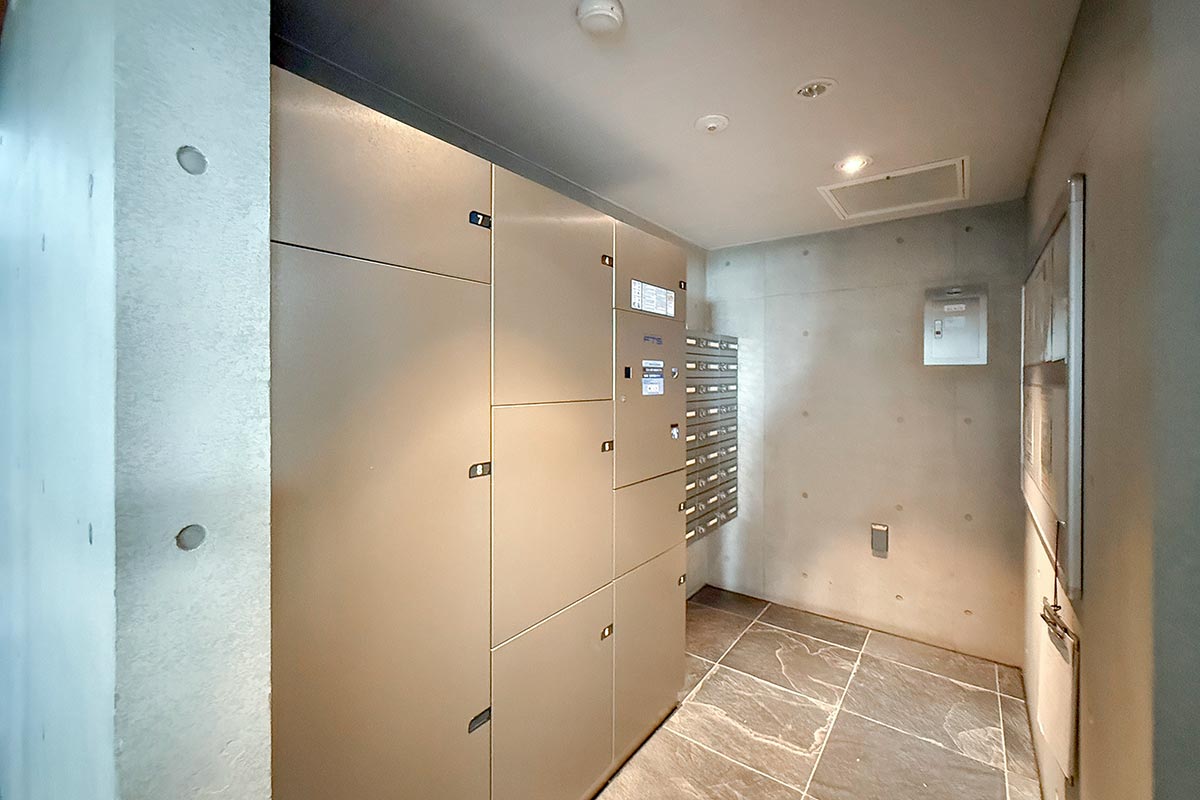 エントランスにはオートロックや宅配ボックスなどの設備に、ソファーのある広々としたロビーがお出迎え。