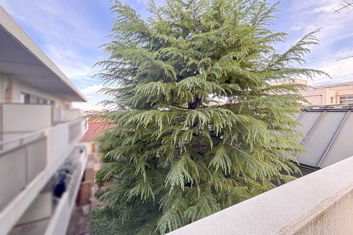 1階部分の中庭には立派な松をはじめ、種類も様々な樹々が植えられていて季節ごとの眺めも楽しめるはず。