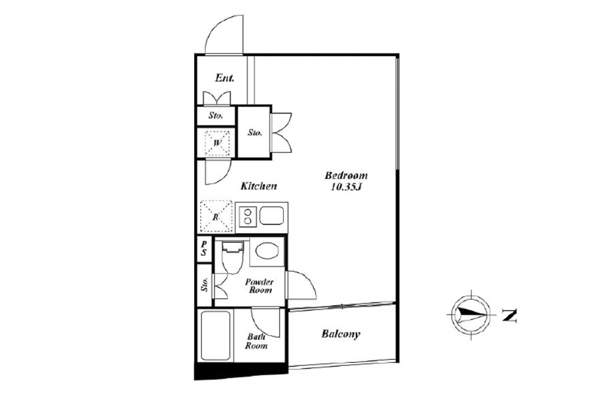 キッチンはややコンパクトなので、平日は外食や簡単な調理で済ませ、週末は自炊派という方にはちょうどよいサイズでしょうか。