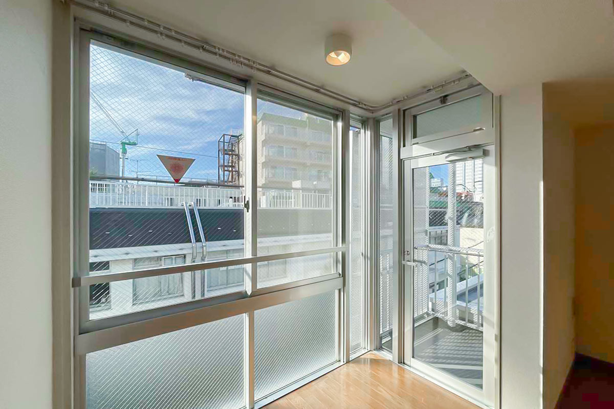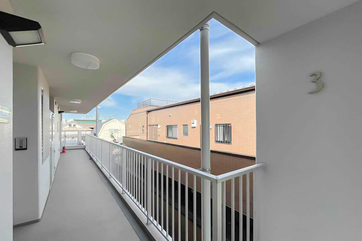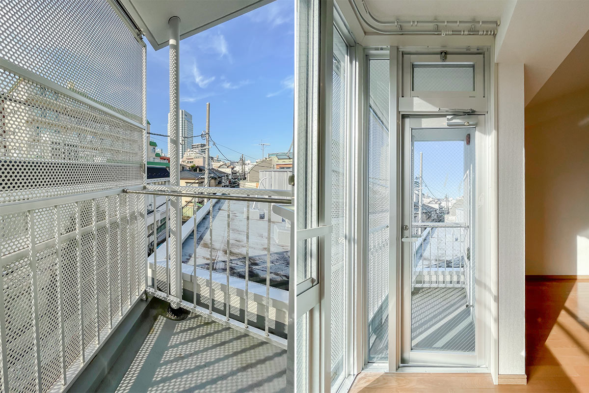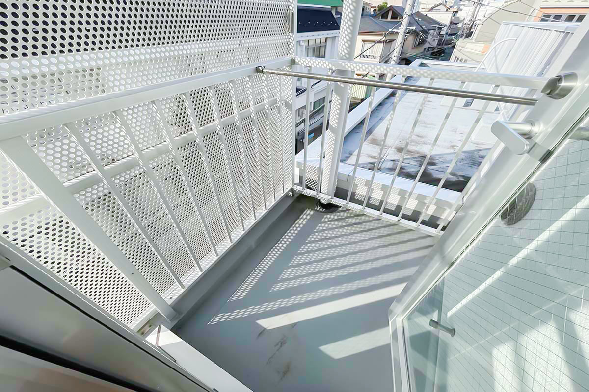 バルコニーの柵はパンチングメタルで目隠しにもなってくれていました。