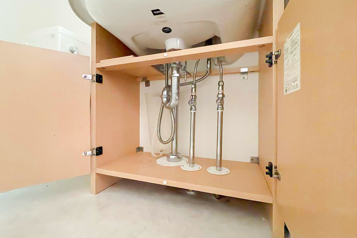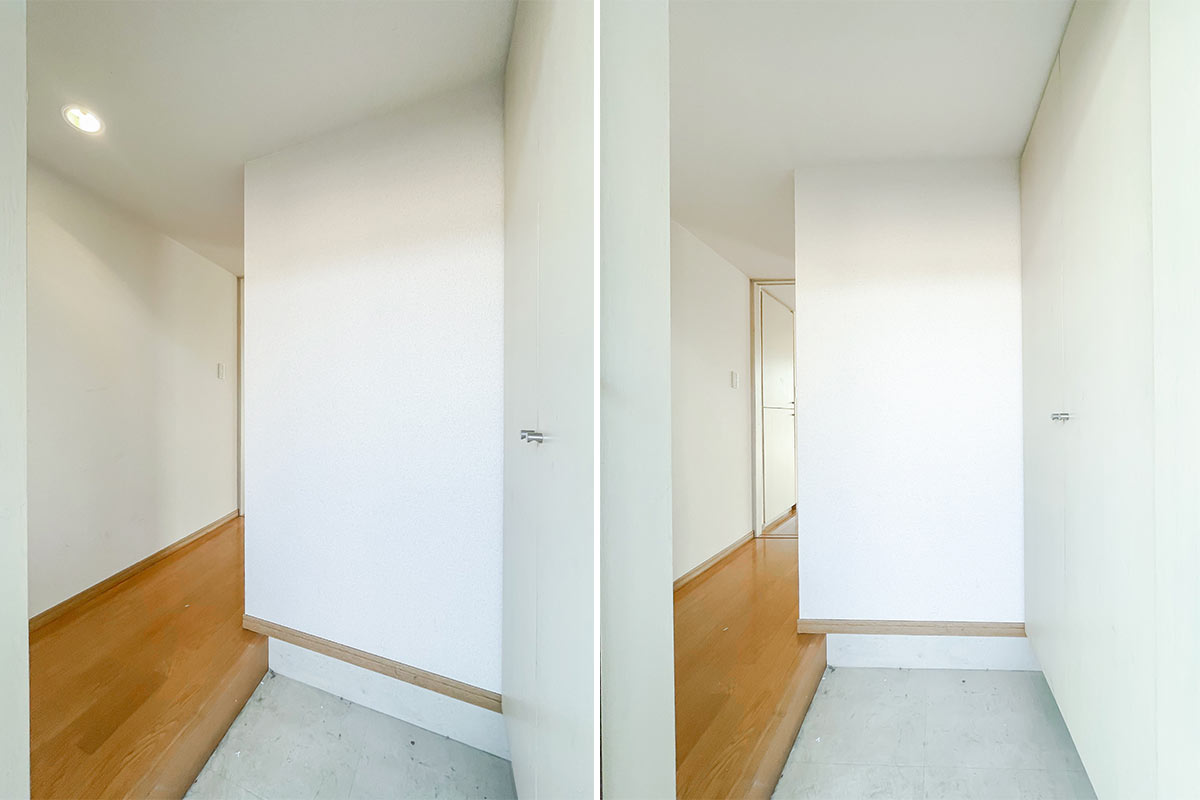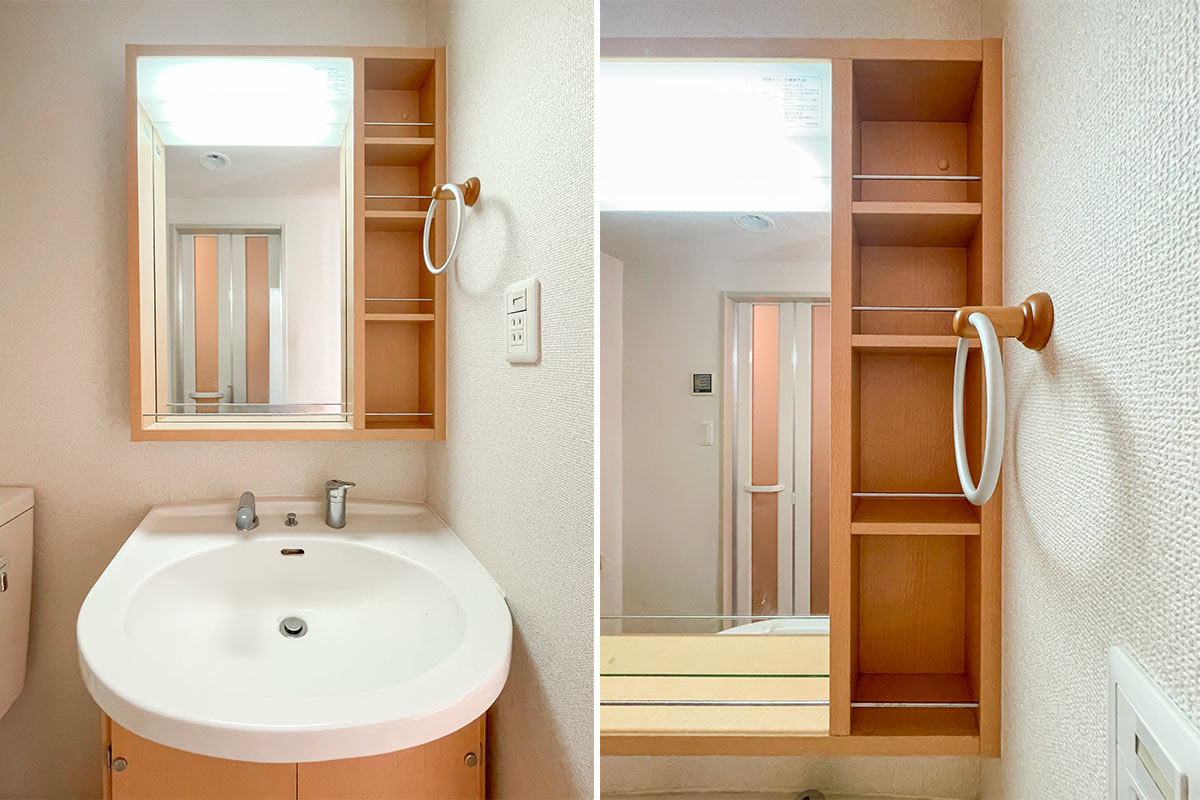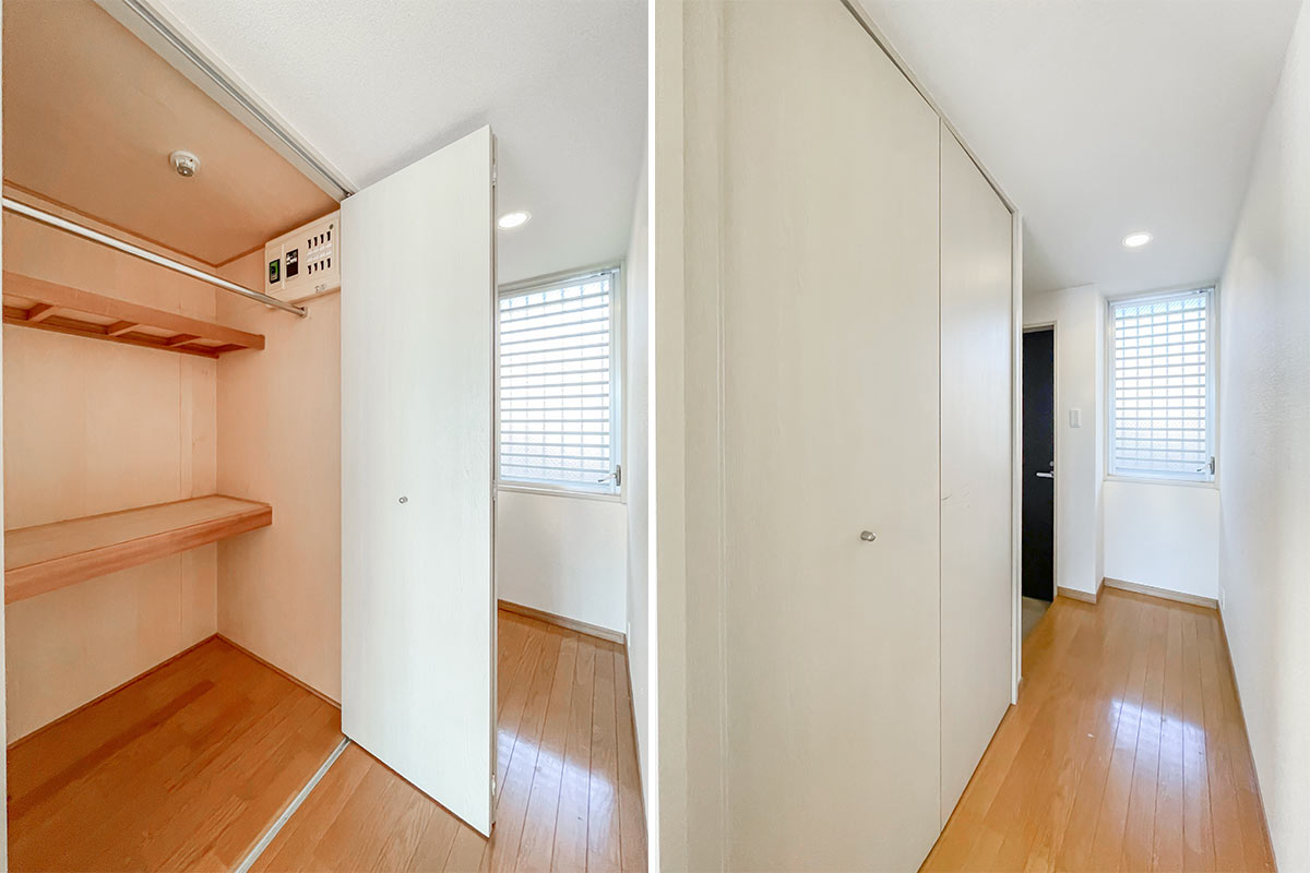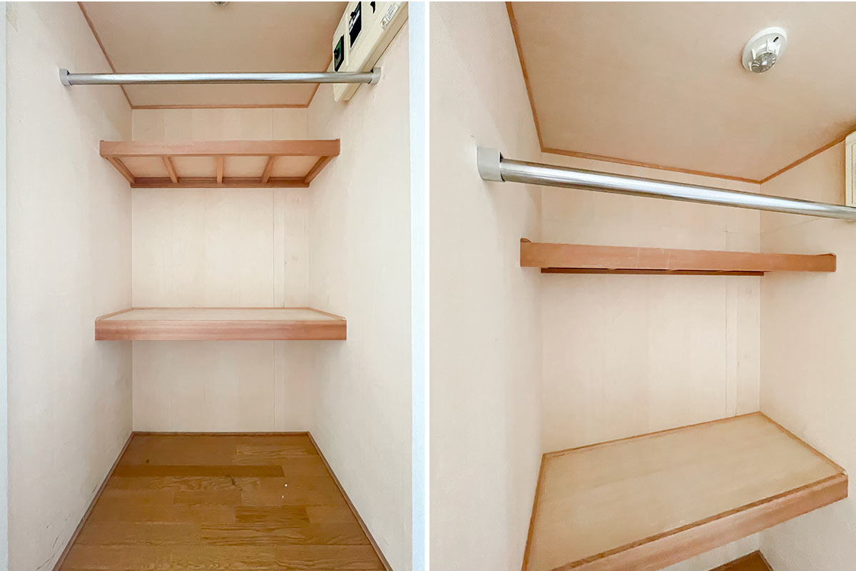靴箱や居室内(洗面所入口横)の棚収納もたっぷり。