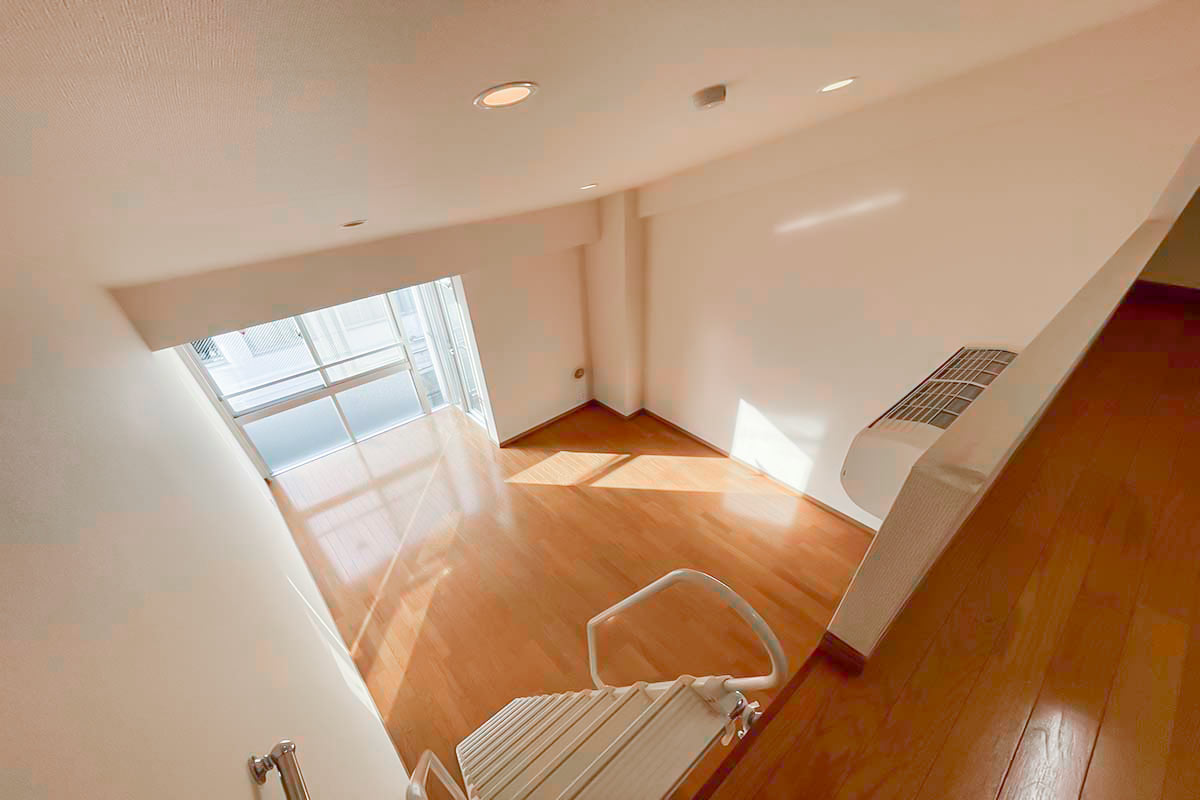 部屋は9帖の広さですが、天高が最大で3m以上あり、感覚的には10~11帖にも感じられました。