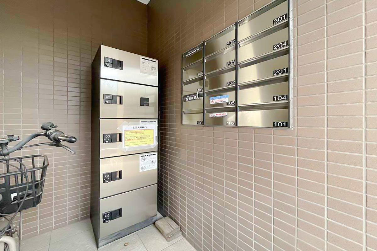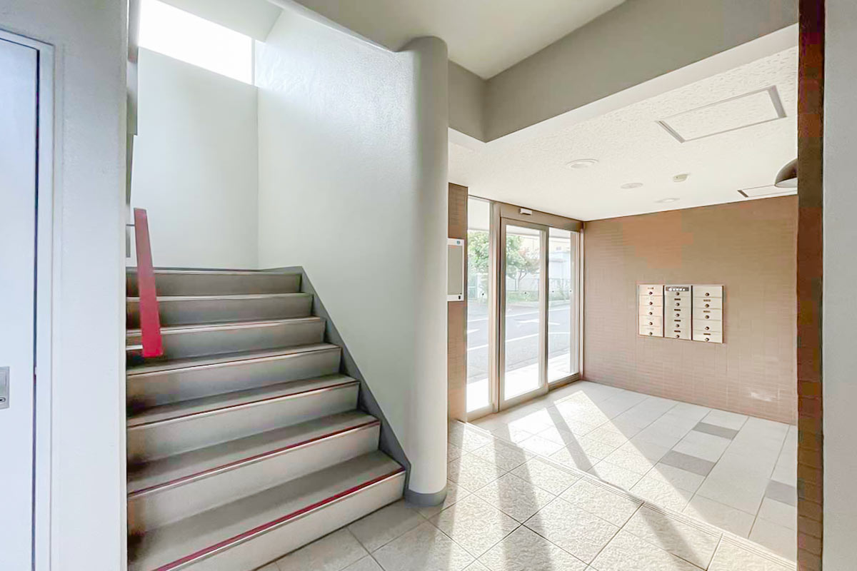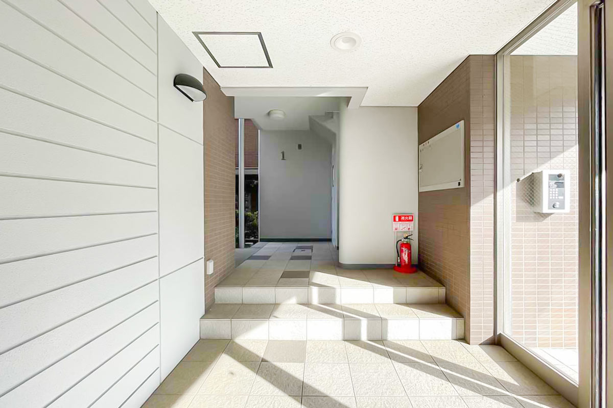 駅近といっても大通り沿いではなく、通りから1本中に入ったところ。3階建ての低層マンションです。